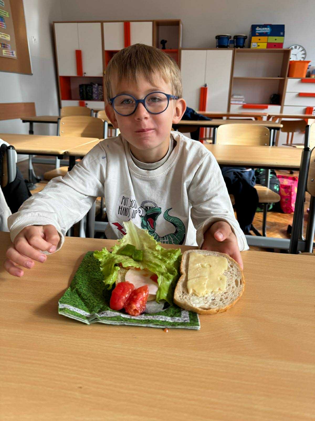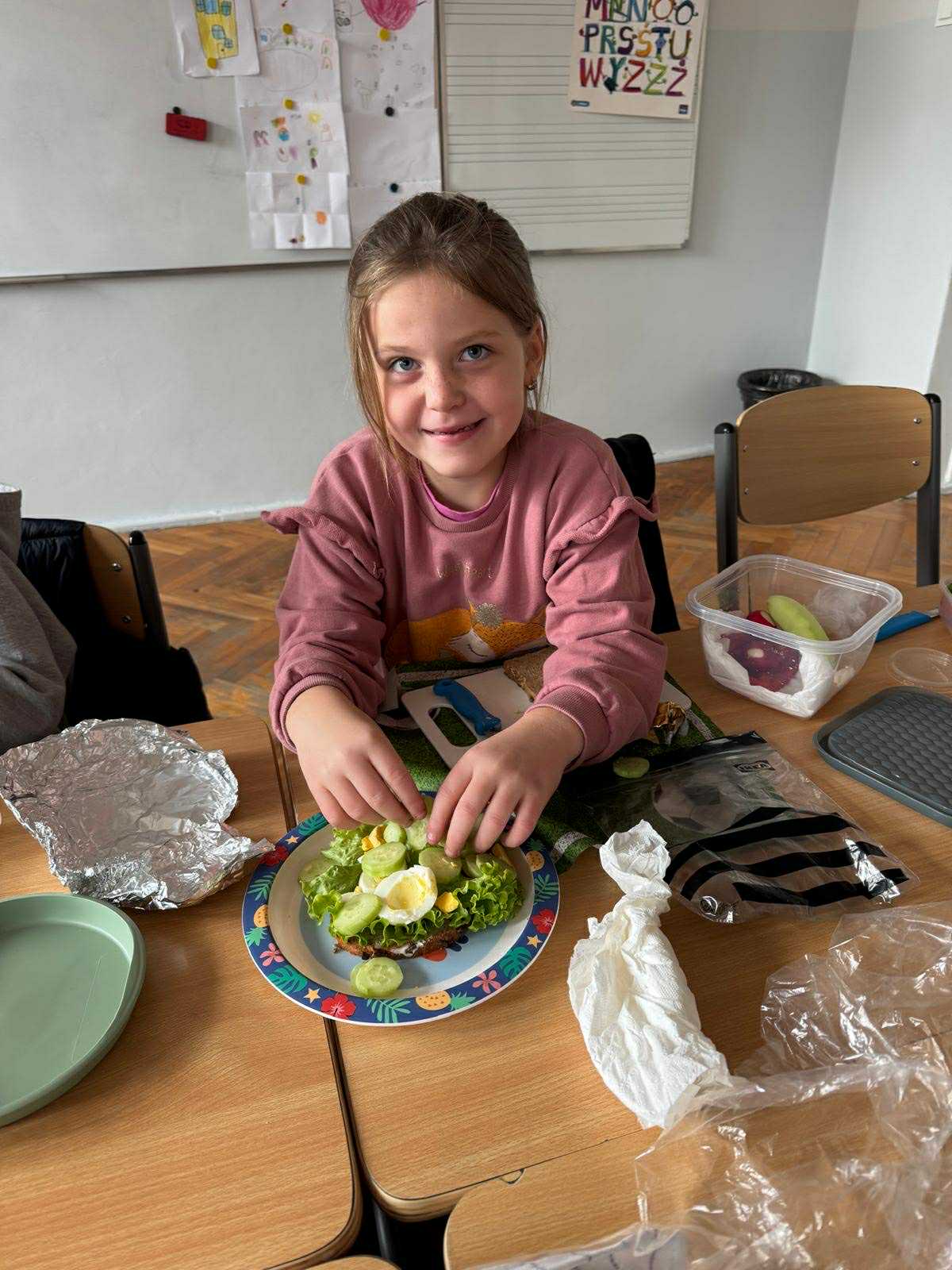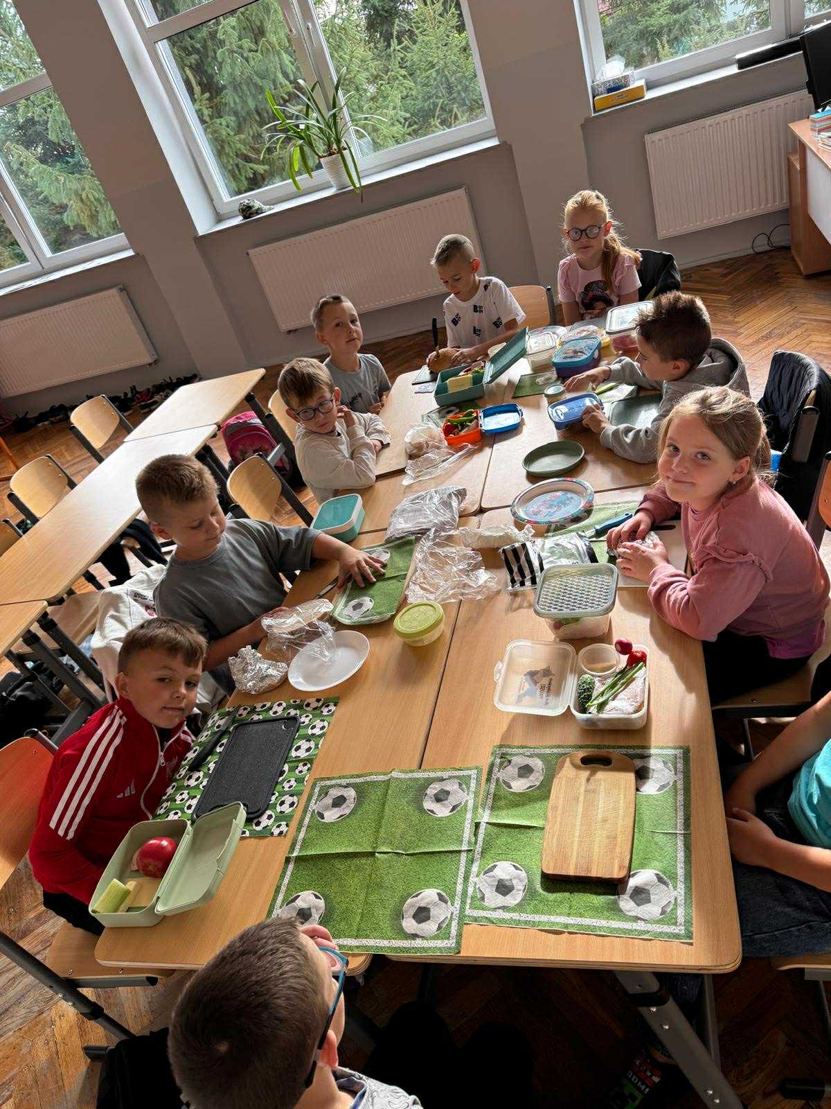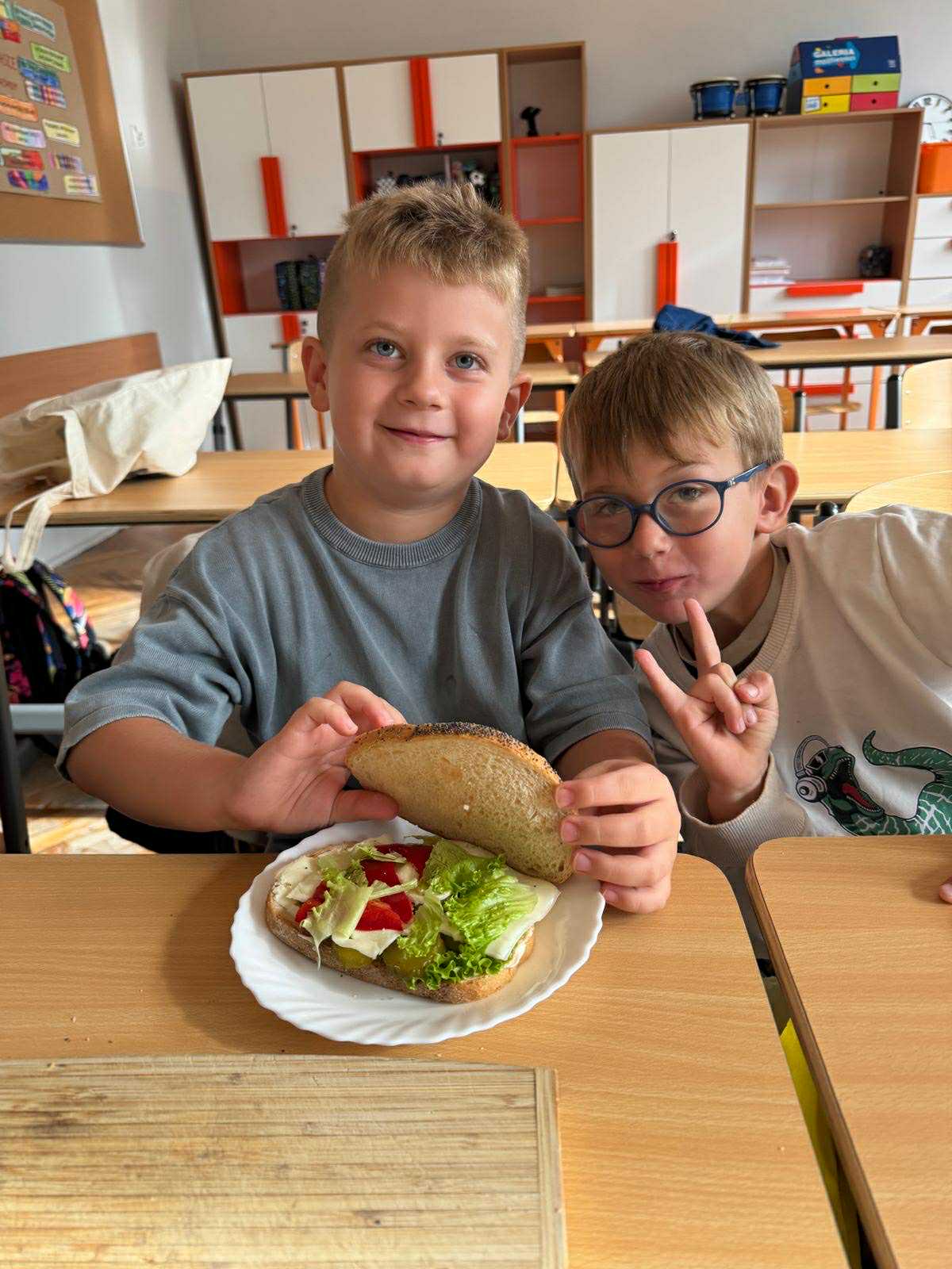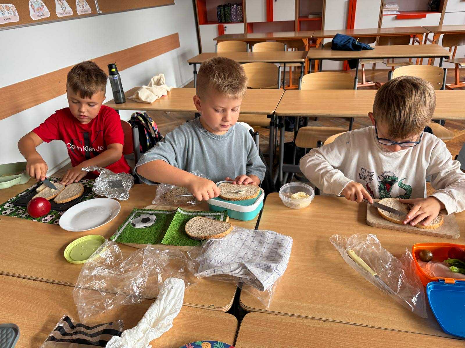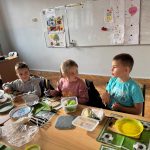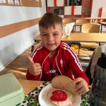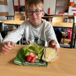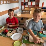 Uczniowie klasy pierwszej przygotowywali własne, zdrowe kanapki. Podczas zajęć uczyli się, jak bezpiecznie posługiwać się nożem oraz jak łączyć składniki, aby posiłek był smaczny i pełen wartości odżywczych. Dzieci dowiedziały się także, jak ważne jest zdrowe odżywianie w codziennym życiu i dlaczego warto sięgać po warzywa, owoce i pełnoziarniste produkty. Zajęcia były nie tylko okazją do zdobycia nowych umiejętności, ale również świetną zabawą i wspólną degustacją przygotowanych kanapek.