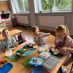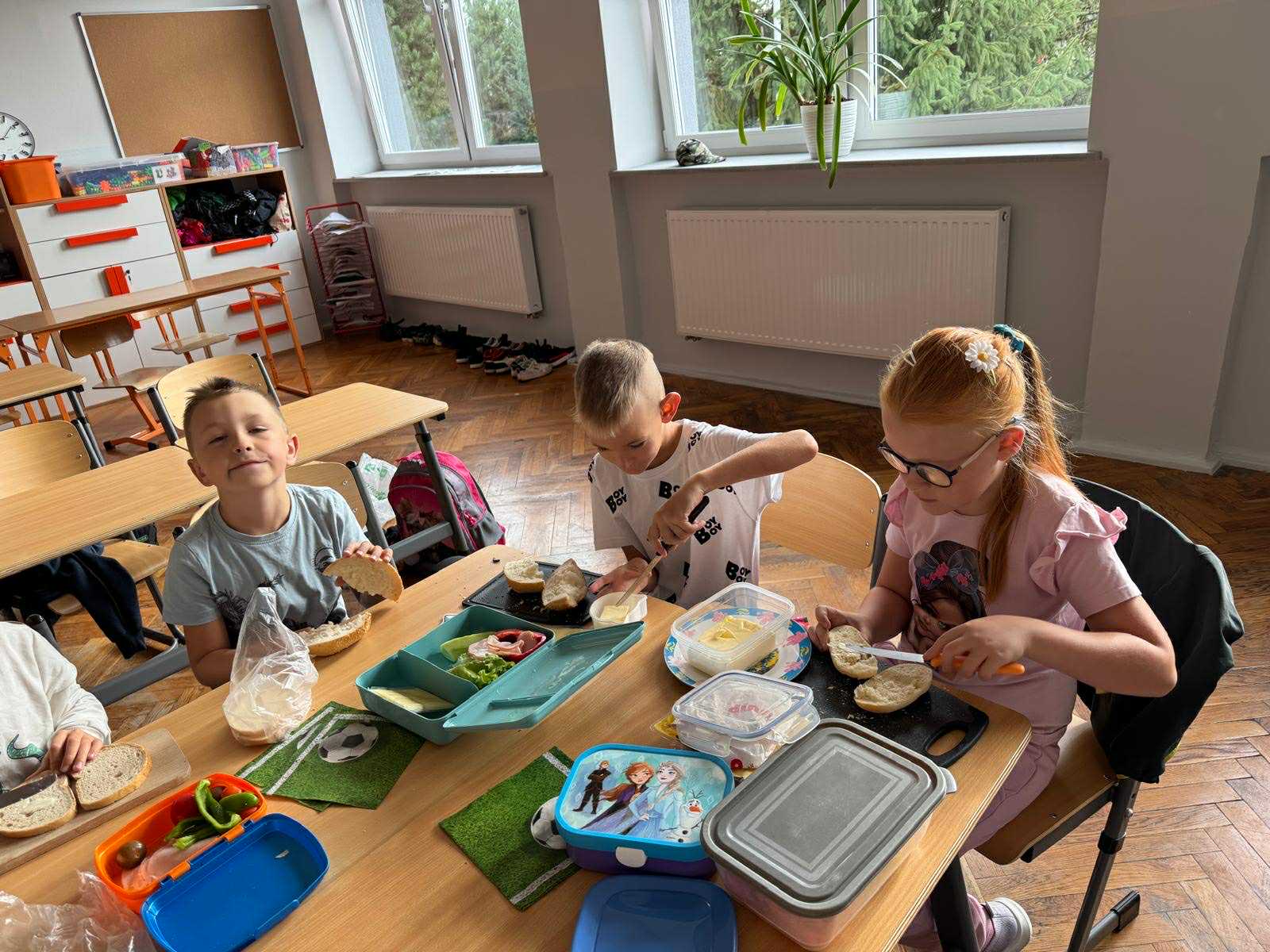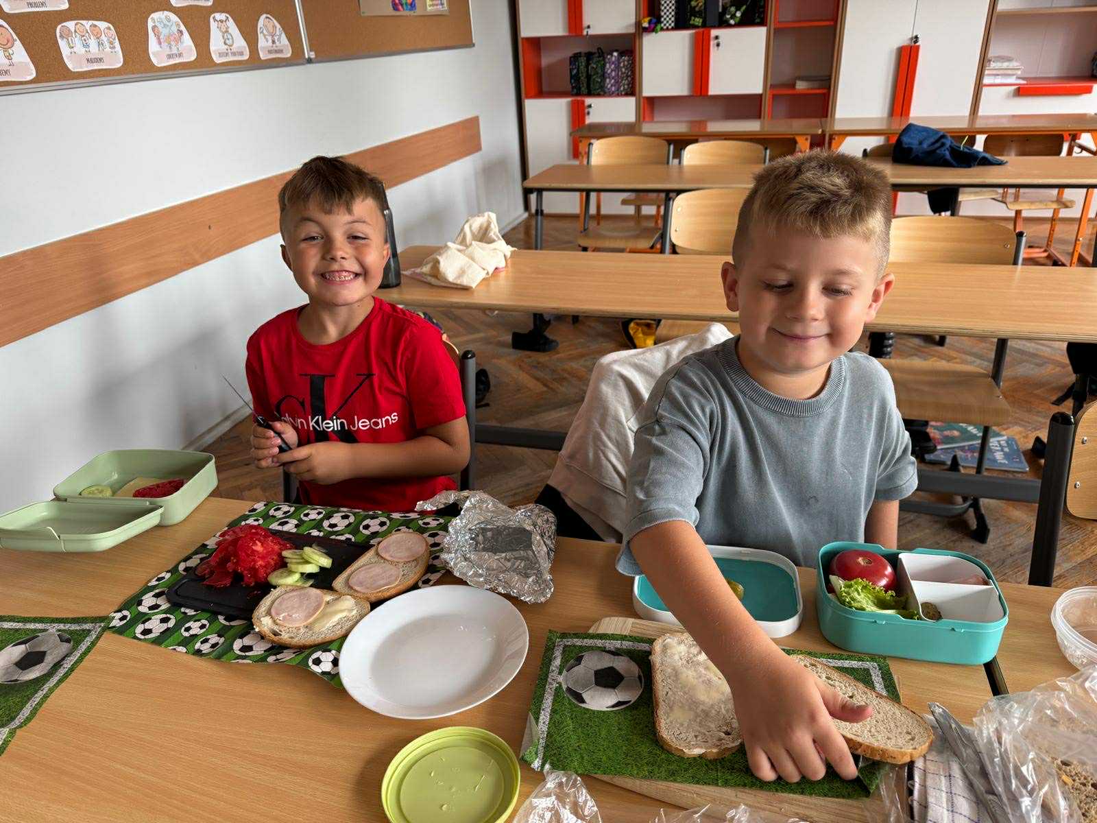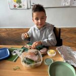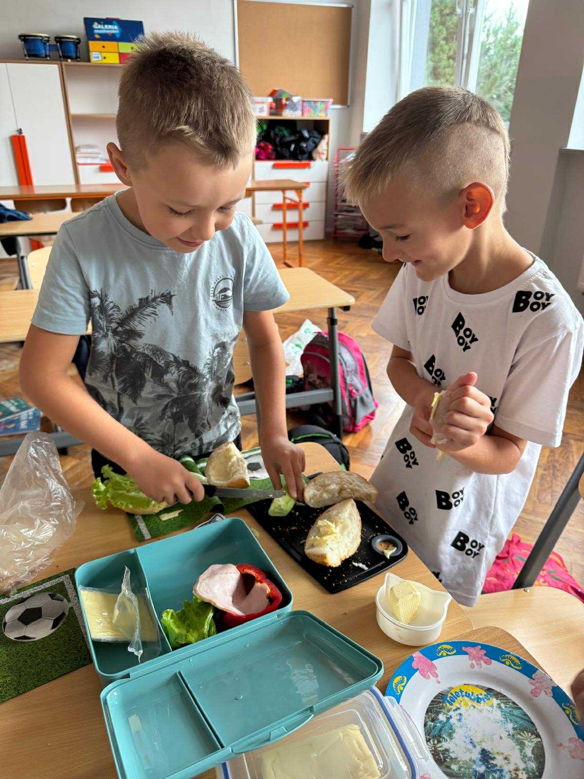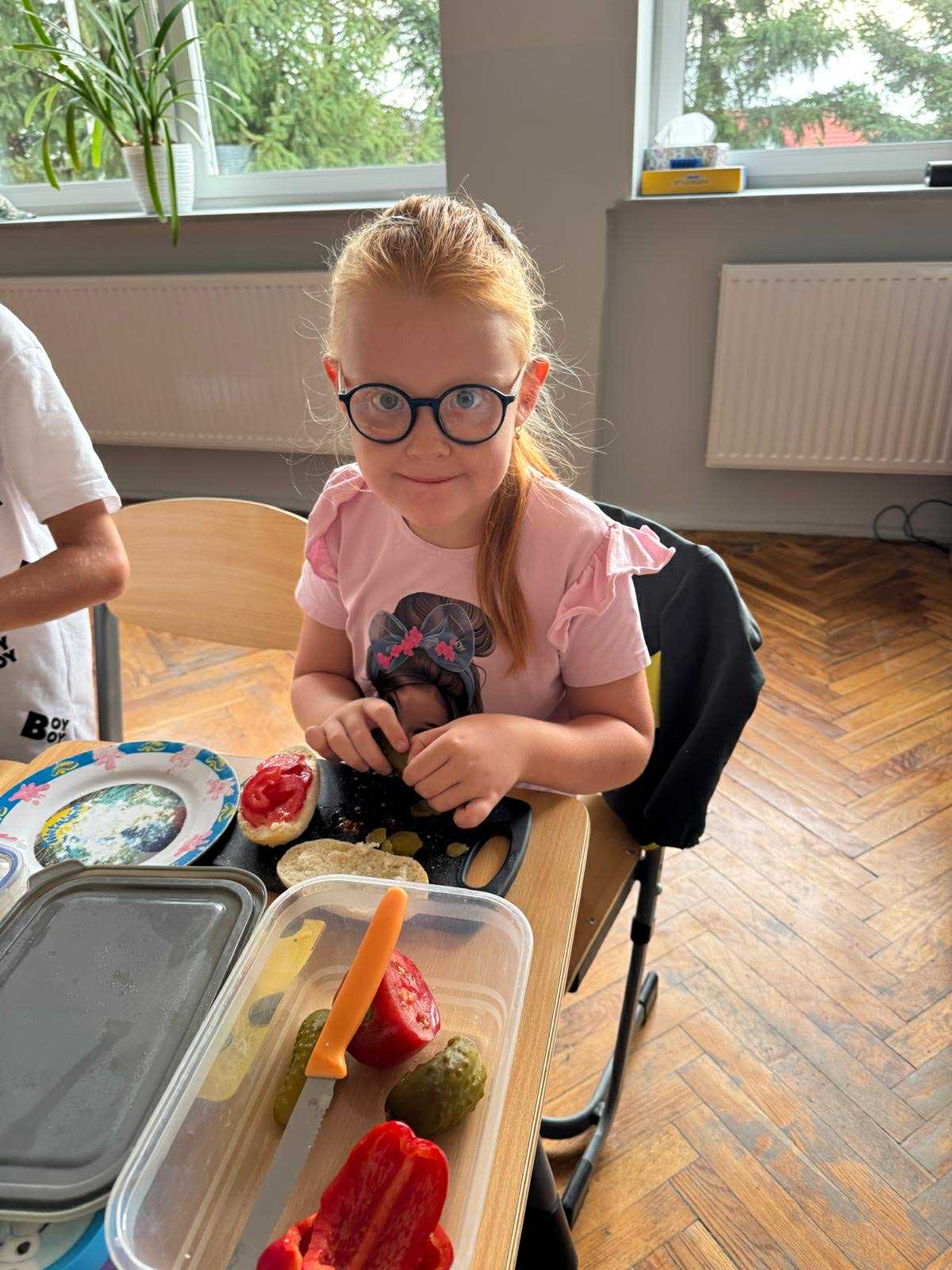 Uczniowie klasy pierwszej przygotowywali własne, zdrowe kanapki. Podczas zajęć uczyli się, jak bezpiecznie posługiwać się nożem oraz jak łączyć składniki, aby posiłek był smaczny i pełen wartości odżywczych. Dzieci dowiedziały się także, jak ważne jest zdrowe odżywianie w codziennym życiu i dlaczego warto sięgać po warzywa, owoce i pełnoziarniste produkty. Zajęcia były nie tylko okazją do zdobycia nowych umiejętności, ale również świetną zabawą i wspólną degustacją przygotowanych kanapek.