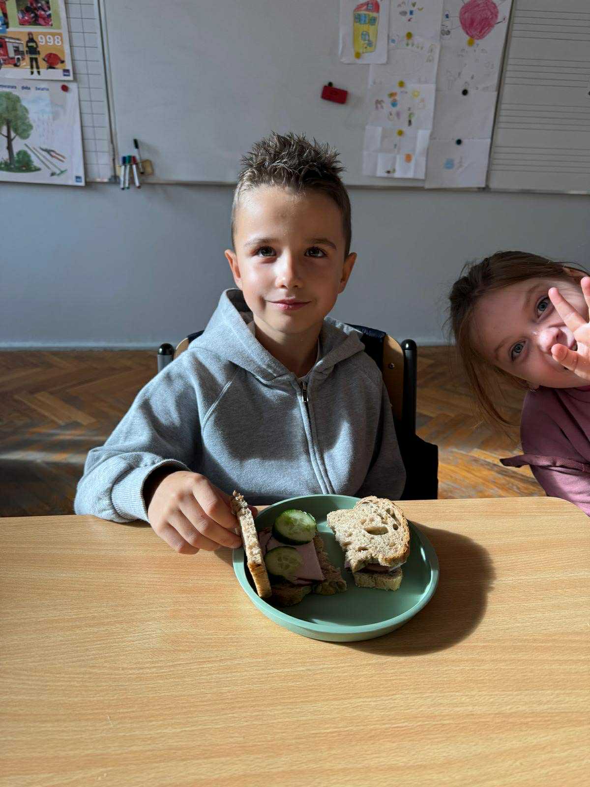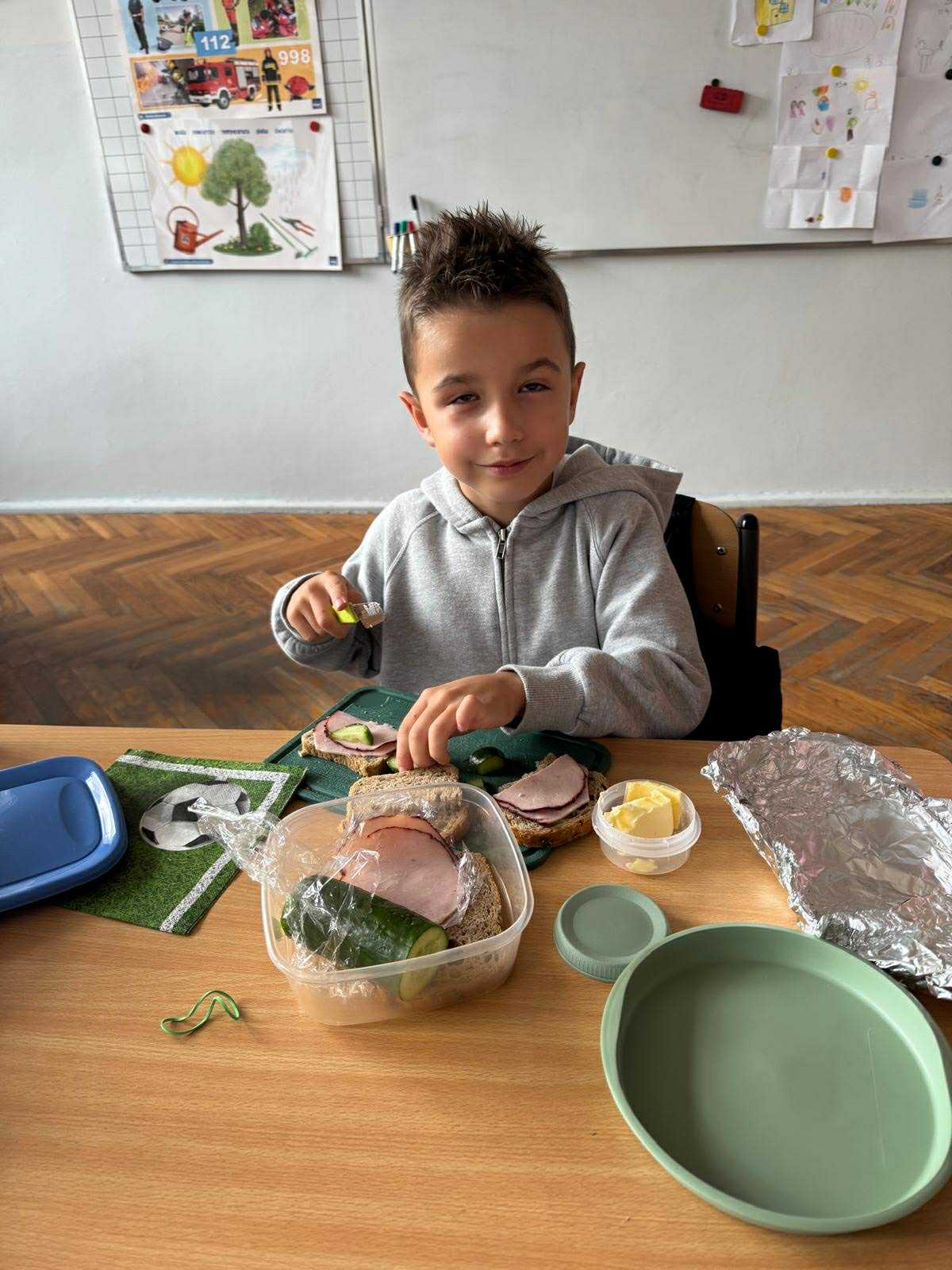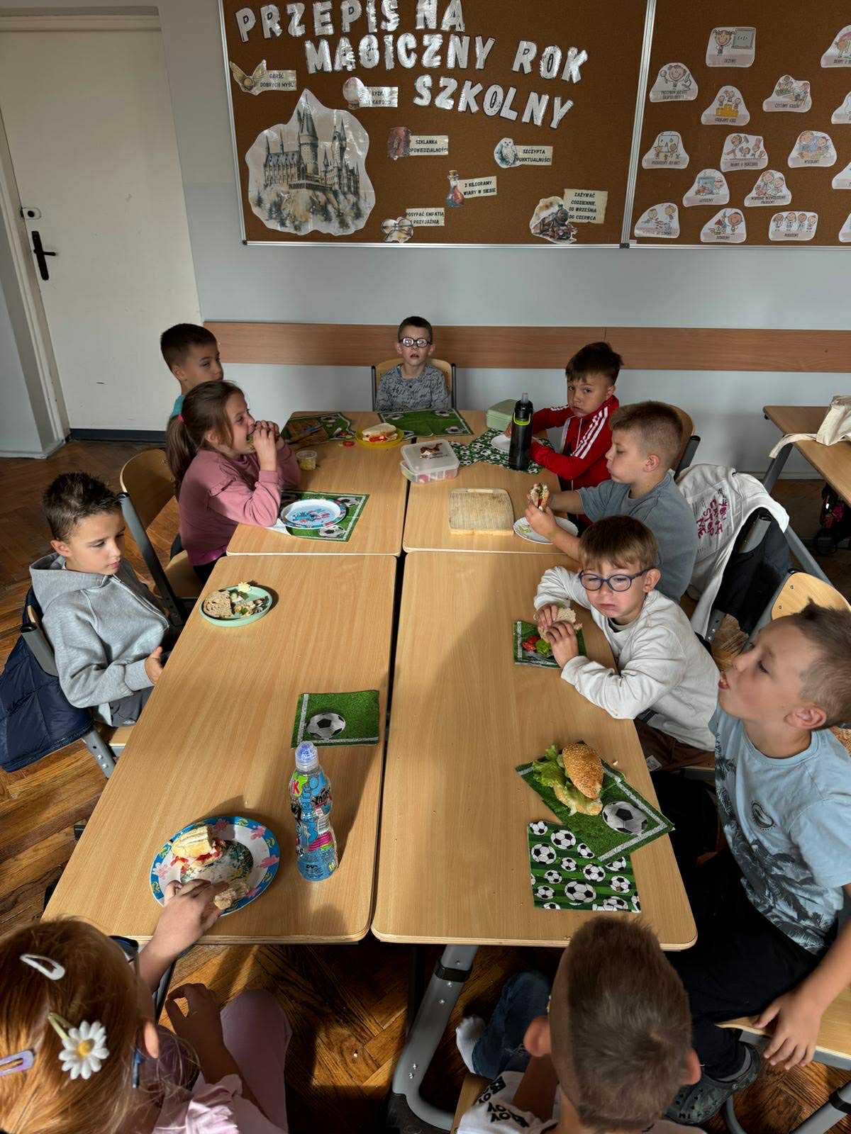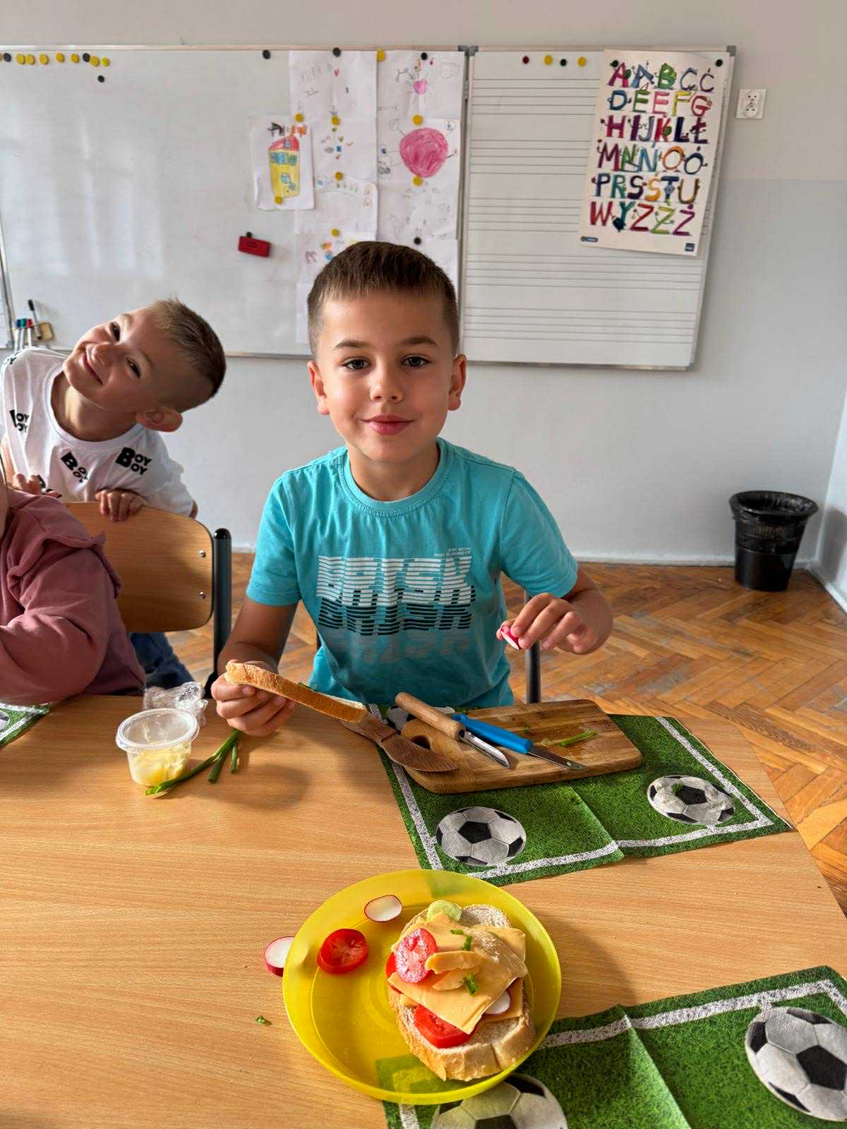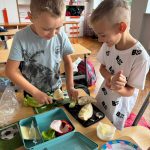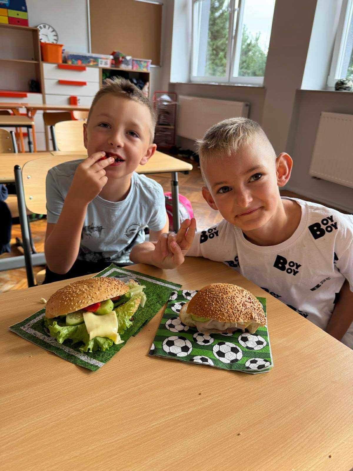 Uczniowie klasy pierwszej przygotowywali własne, zdrowe kanapki. Podczas zajęć uczyli się, jak bezpiecznie posługiwać się nożem oraz jak łączyć składniki, aby posiłek był smaczny i pełen wartości odżywczych. Dzieci dowiedziały się także, jak ważne jest zdrowe odżywianie w codziennym życiu i dlaczego warto sięgać po warzywa, owoce i pełnoziarniste produkty. Zajęcia były nie tylko okazją do zdobycia nowych umiejętności, ale również świetną zabawą i wspólną degustacją przygotowanych kanapek.