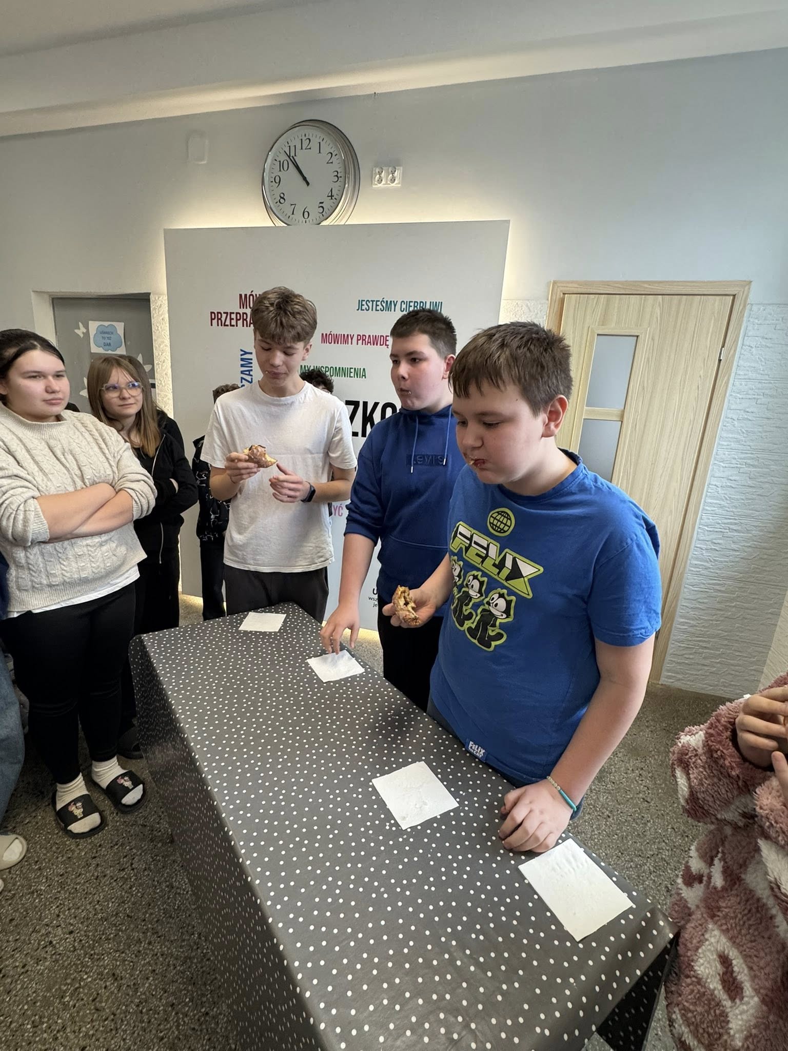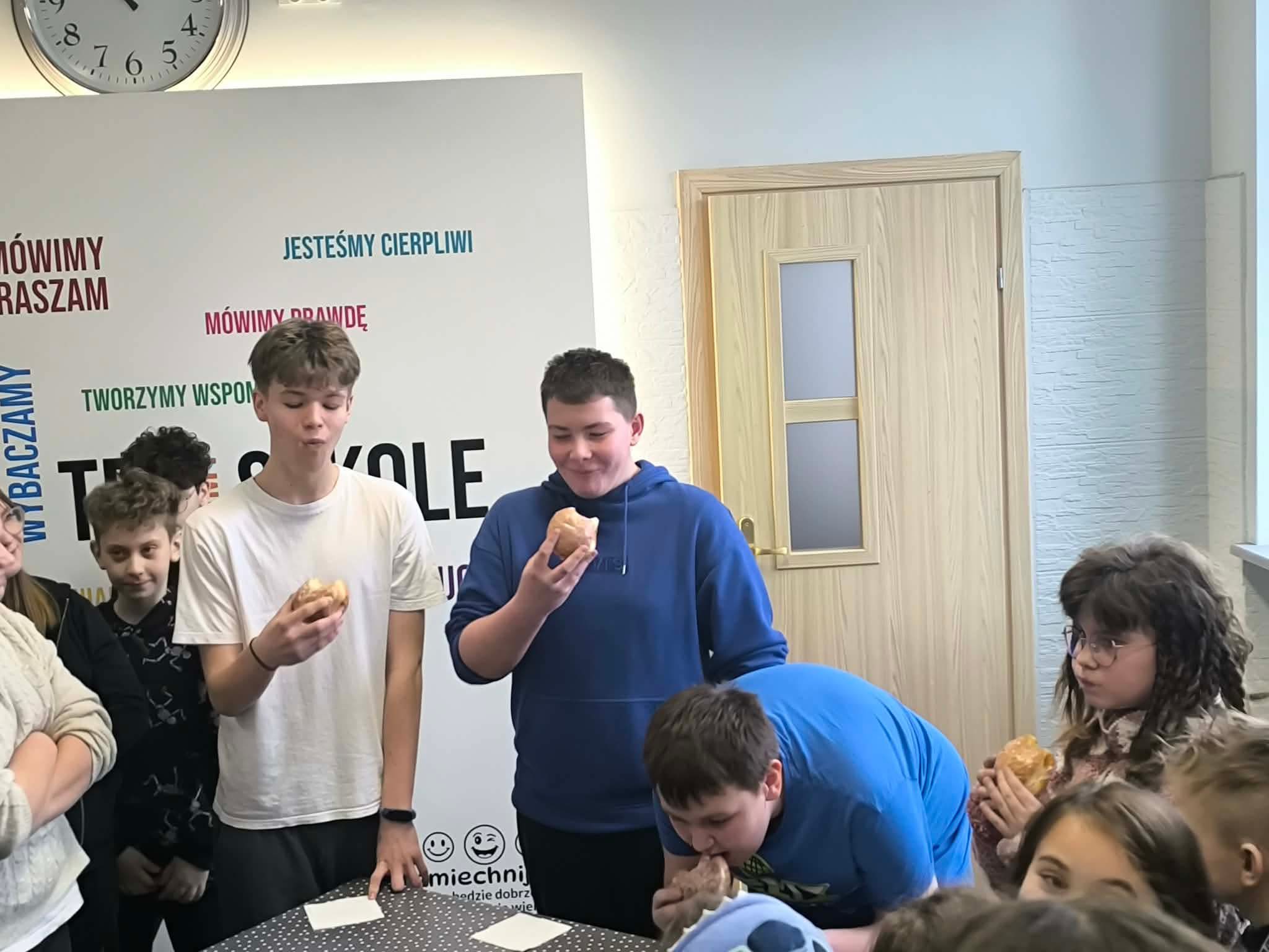 Jak co roku w naszej szkole świętowaliśmy Tłusty Czwartek w wyjątkowo słodkiej atmosferze. Nie zabrakło pączków, uśmiechów i dobrej zabawy. Najwięcej emocji wzbudził konkurs na zjedzenie pączka bez oblizywania się, który dostarczył wszystkim mnóstwo radości i śmiechu.