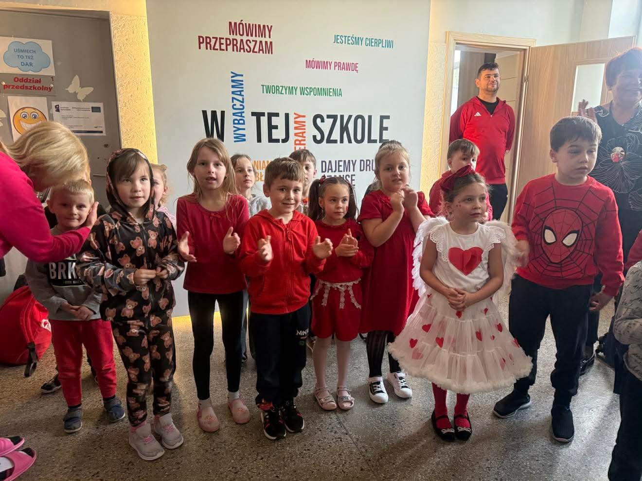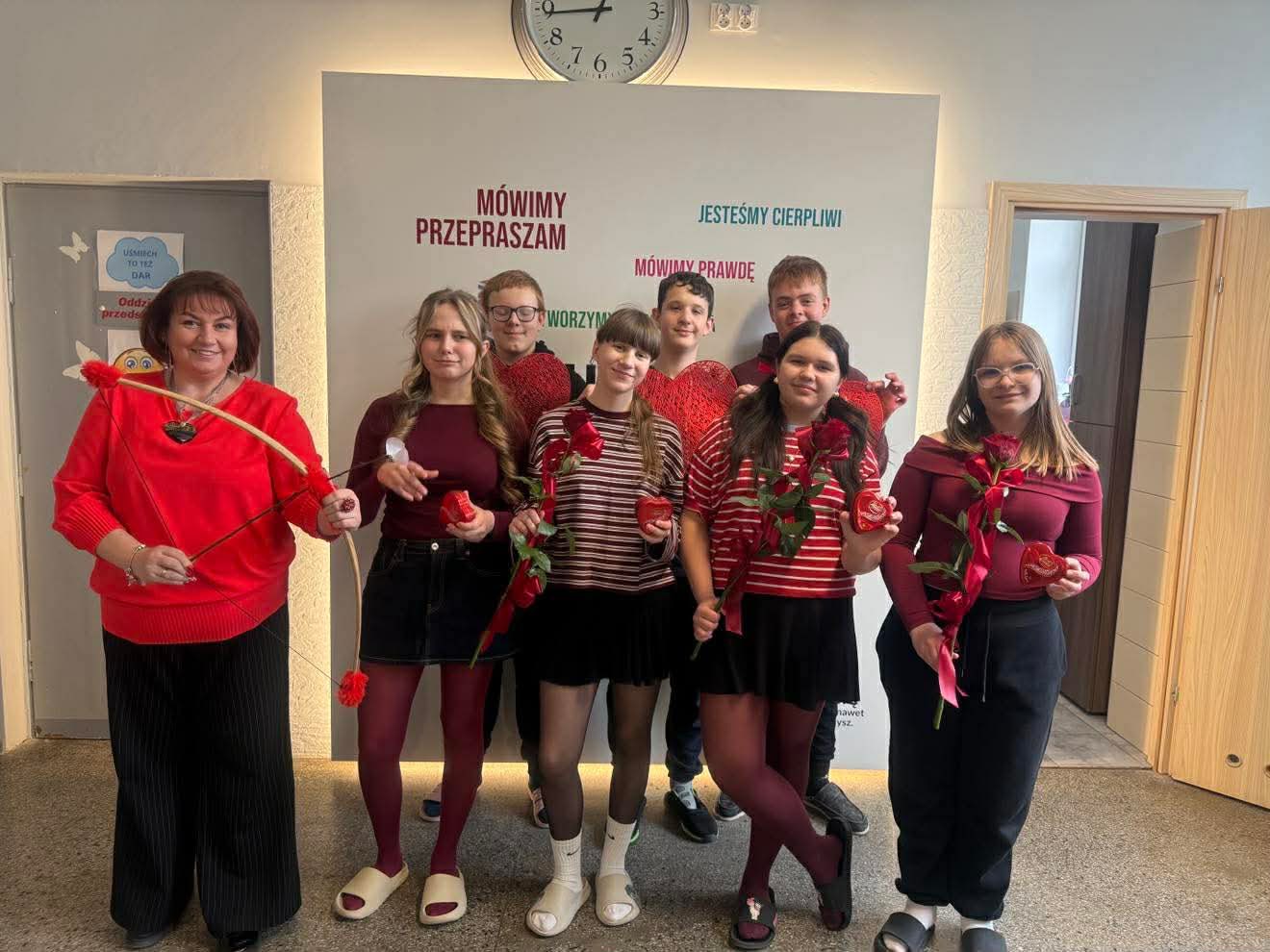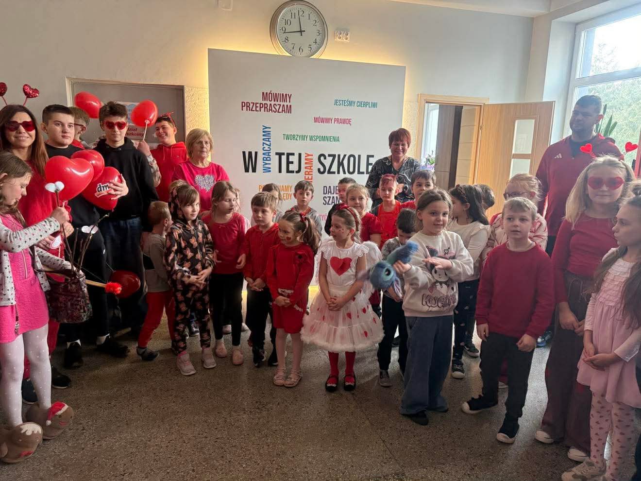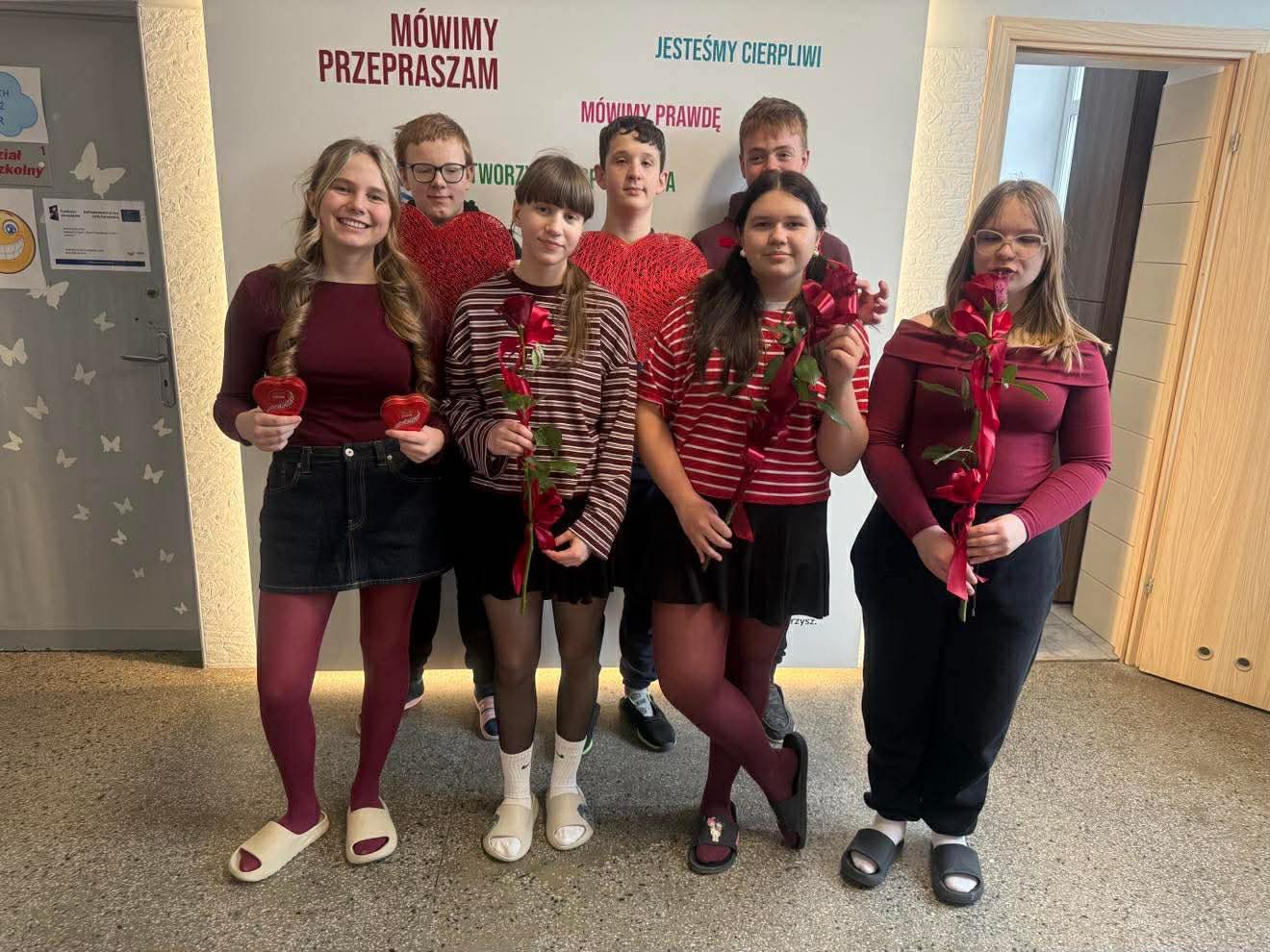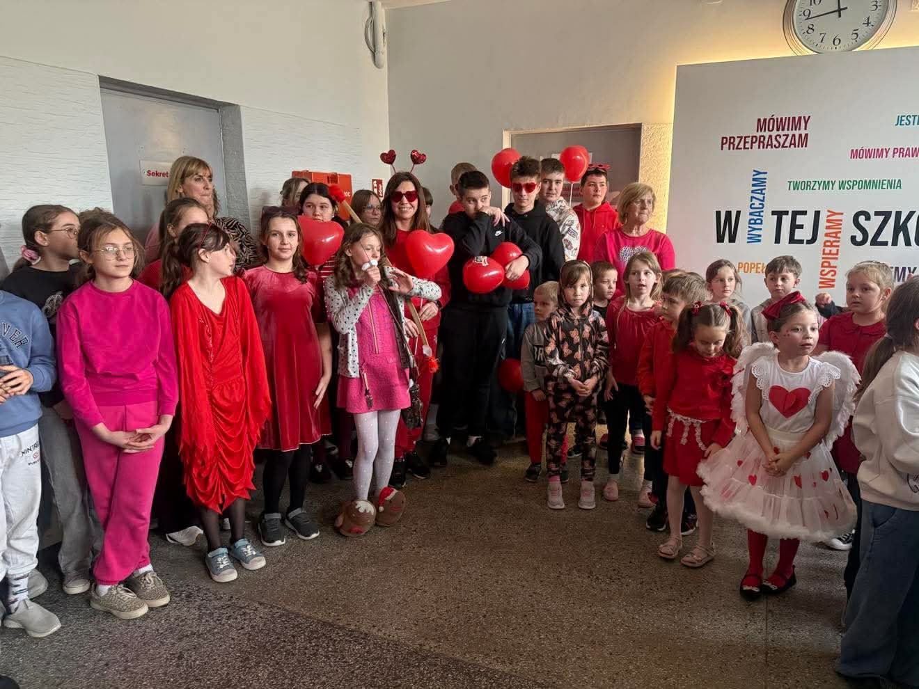 14 lutego w naszej szkole panowała wyjątkowa, pełna serdeczności atmosfera. Z okazji Walentynek uczniowie i nauczyciele ubrali się w czerwone i różowe barwy, a szkolne korytarze wypełniły się uśmiechami, życzliwością i pozytywną energią.