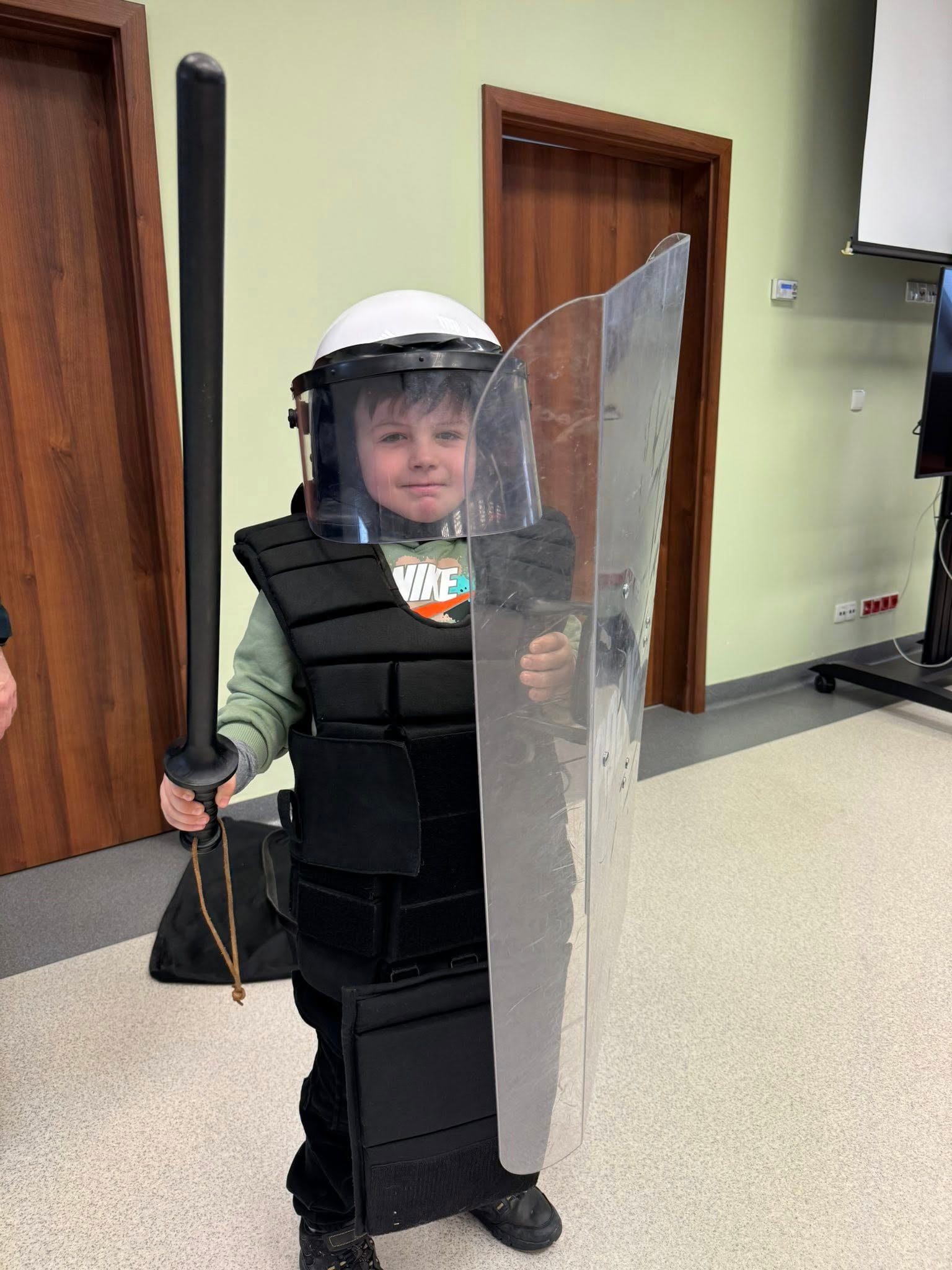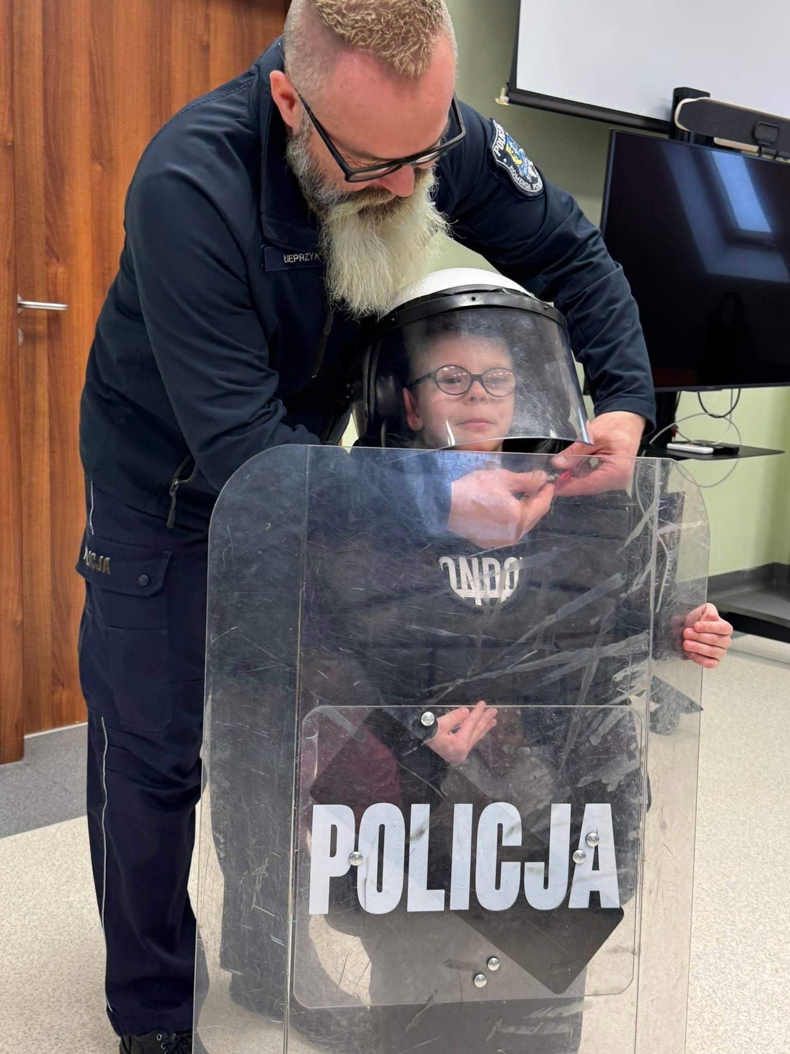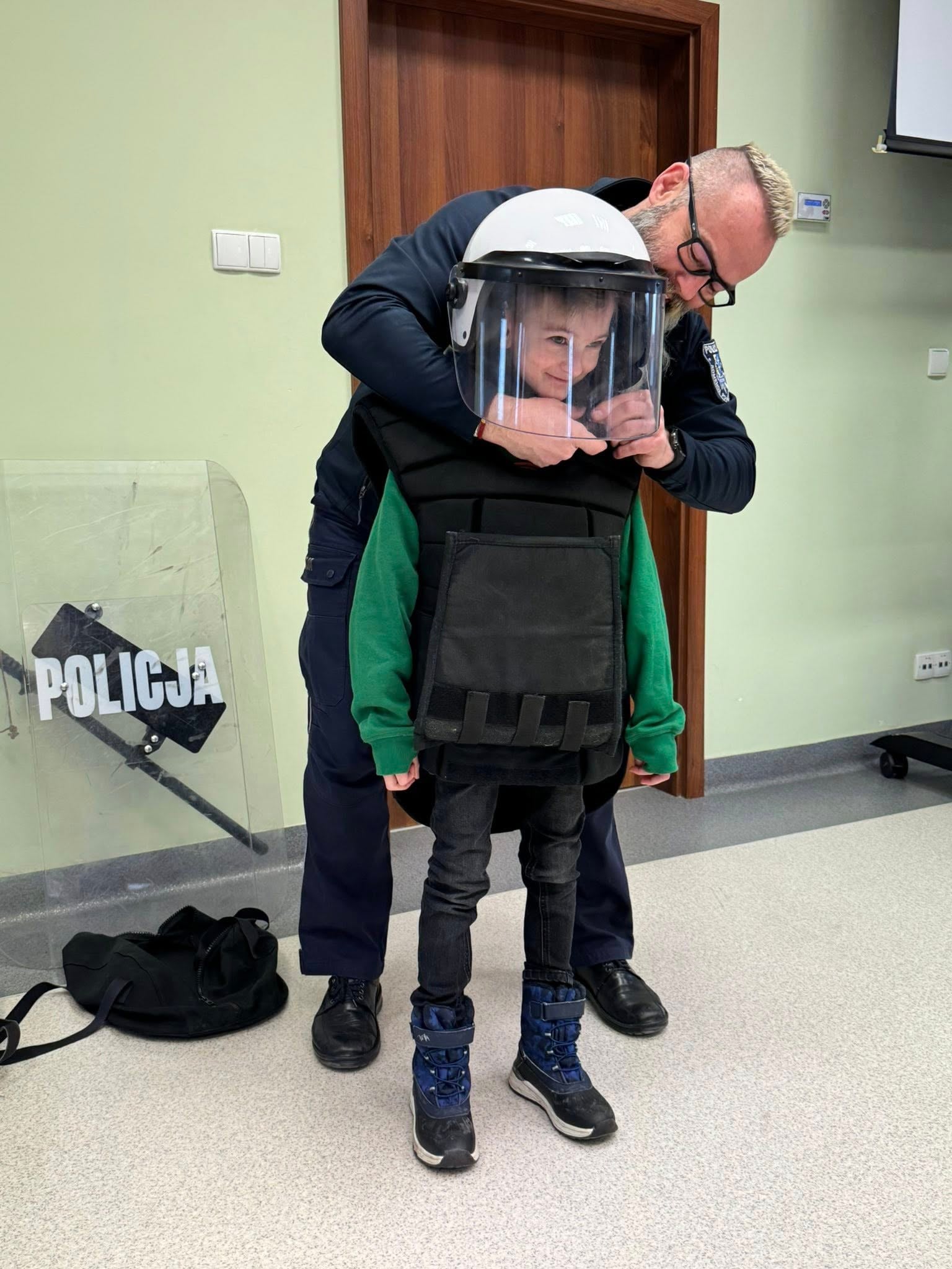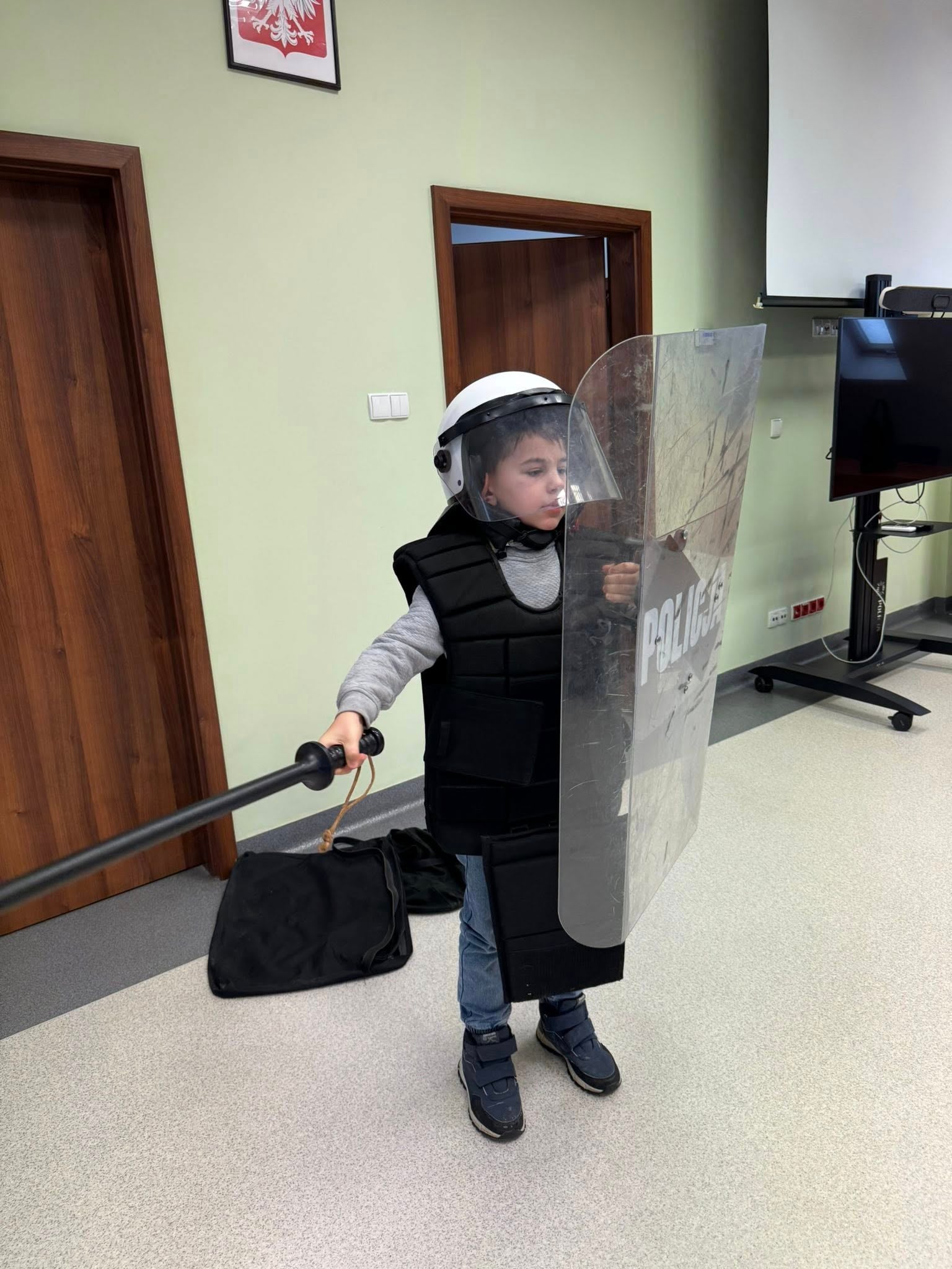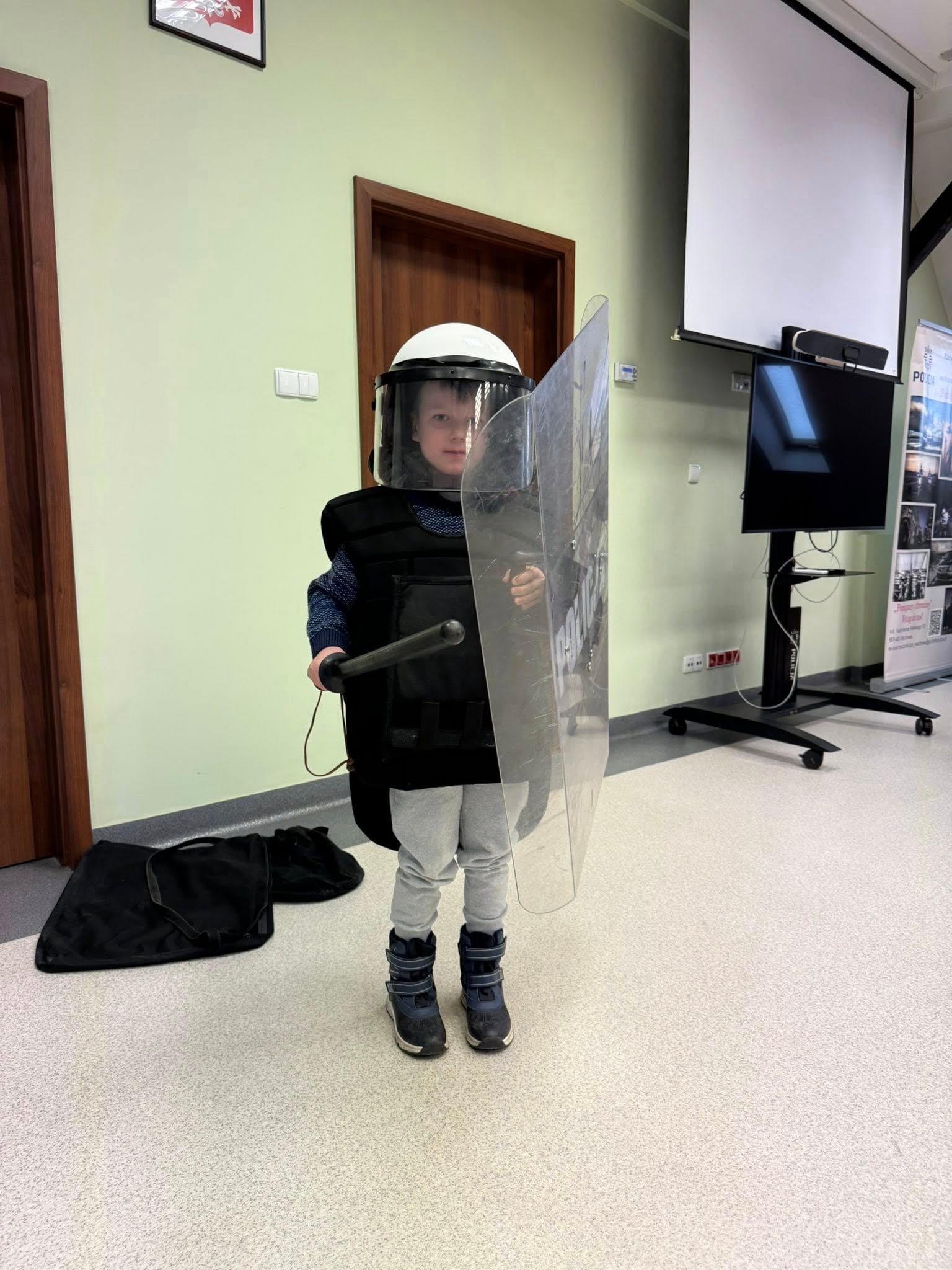 Uczniowie klasy pierwszej w ramach projektu, realizując temat zajęć technicznych dotyczących preorientacji zawodowej, uczestniczyli w wycieczce do Komendy Policji we Wschowie. Podczas wizyty dzieci mogły zobaczyć różne pomieszczenia jednostki oraz zapoznać się z zadaniami wykonywanymi przez policjantów w codziennej pracy. Każdy uczeń miał również okazję przymierzyć strój używany podczas działań na stadionach, co pozwoliło im lepiej zrozumieć specyfikę pracy funkcjonariuszy.