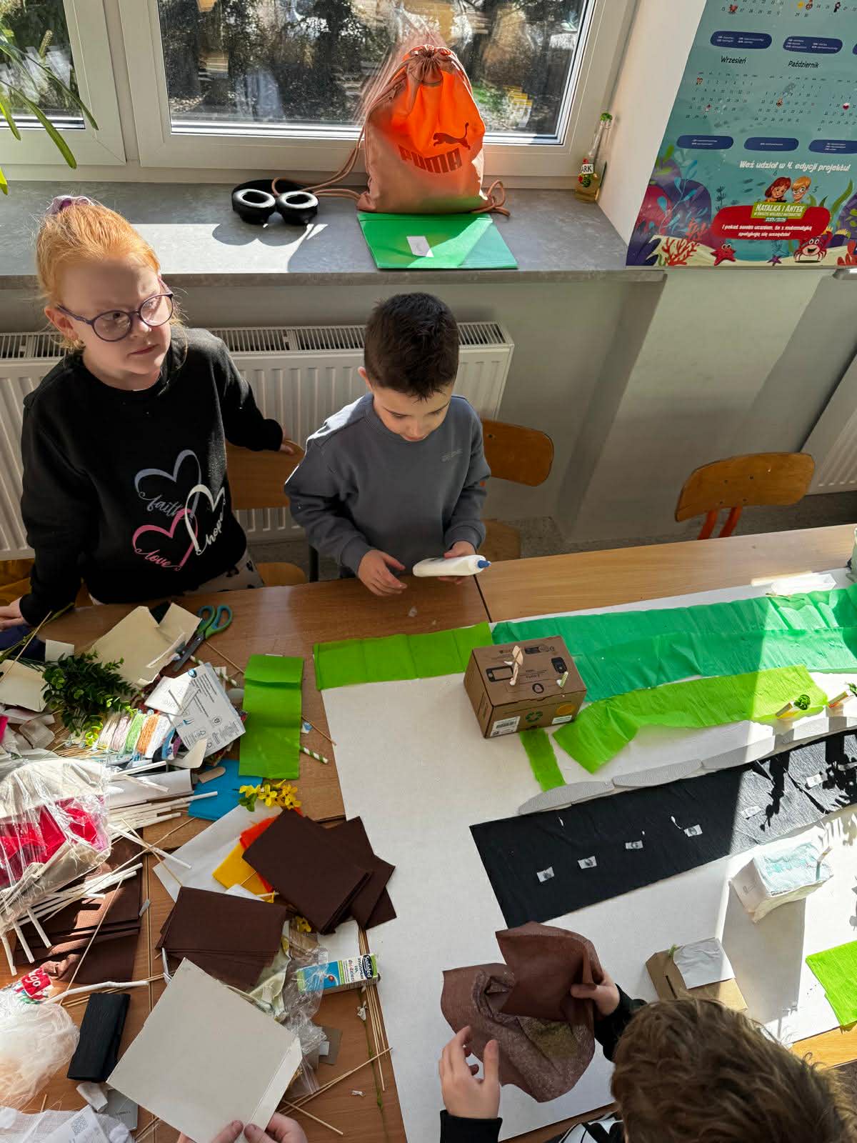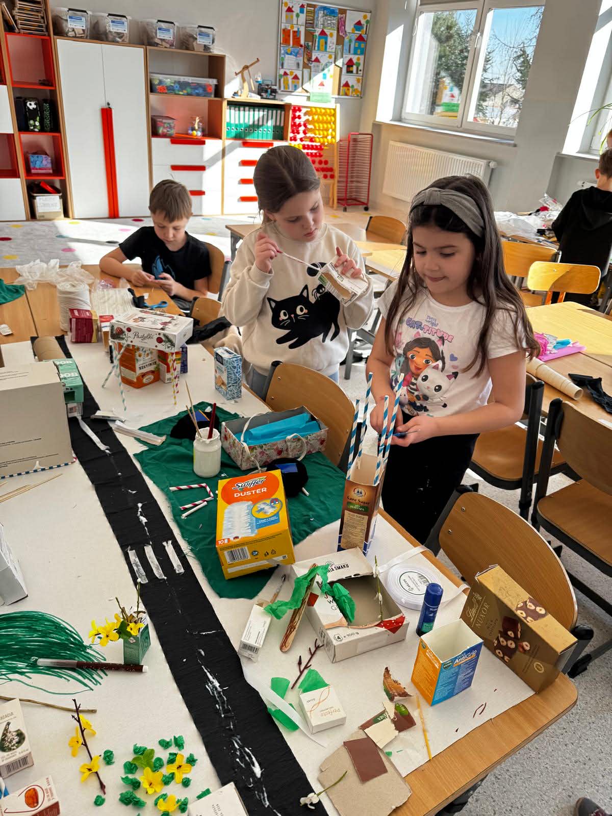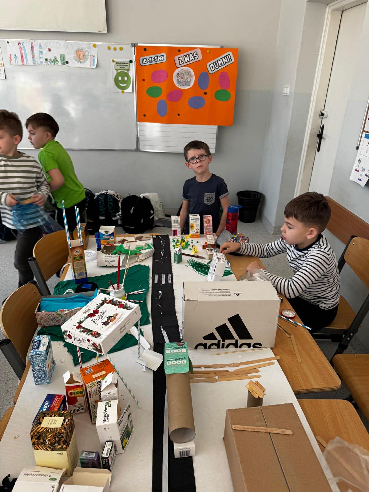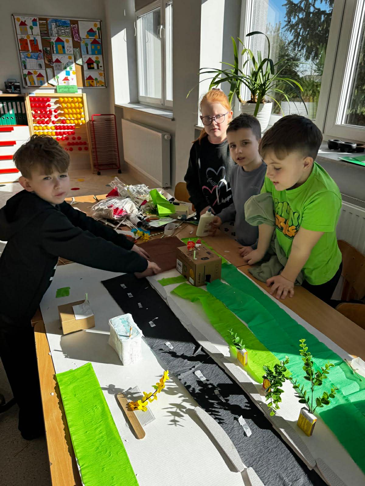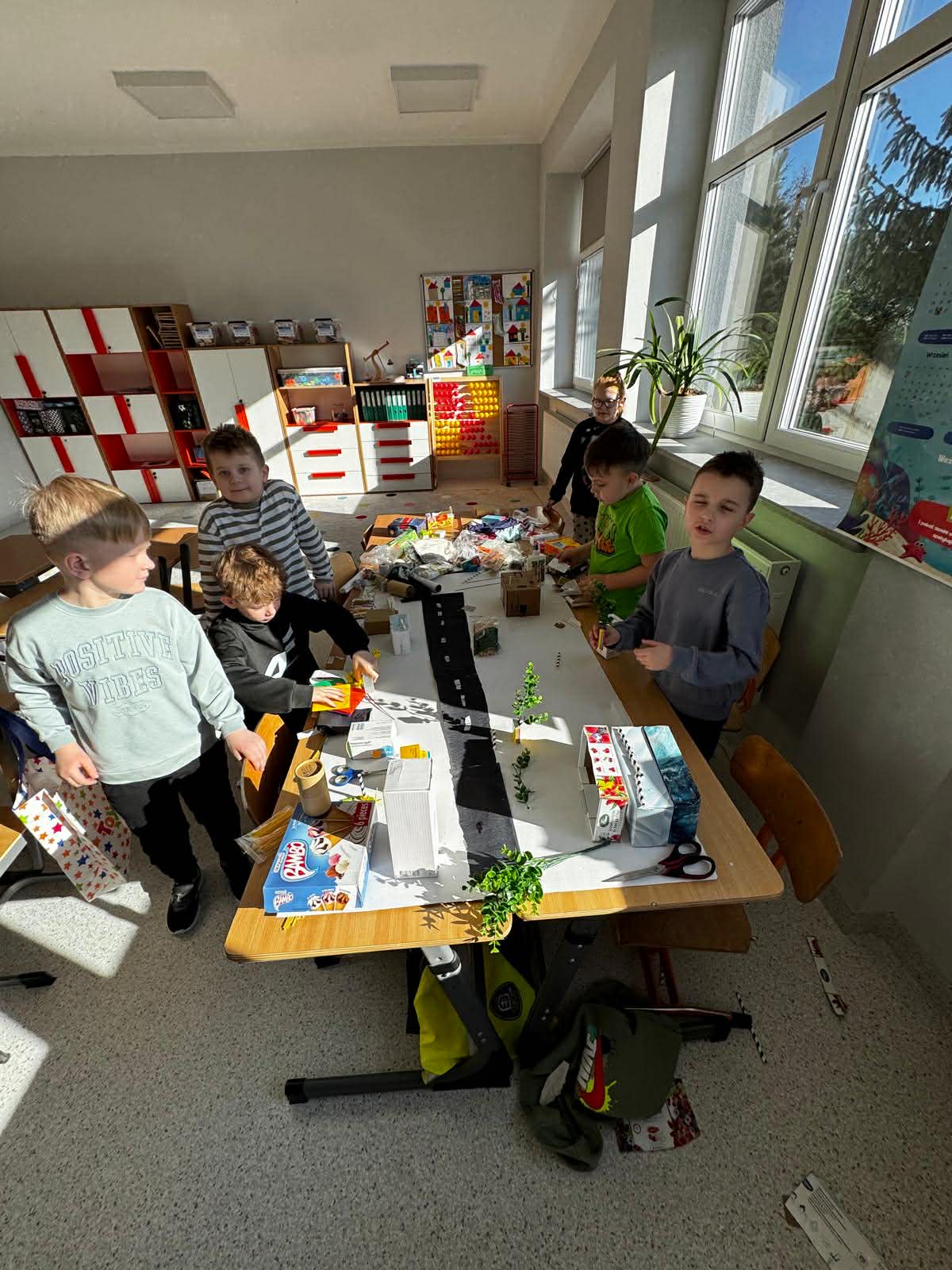 Uczniowie klasy pierwszej w ramach edukacji technicznej realizowanego projektu „Uczniowie przyszłości to My” wykonywali makiety swojej miejscowości.