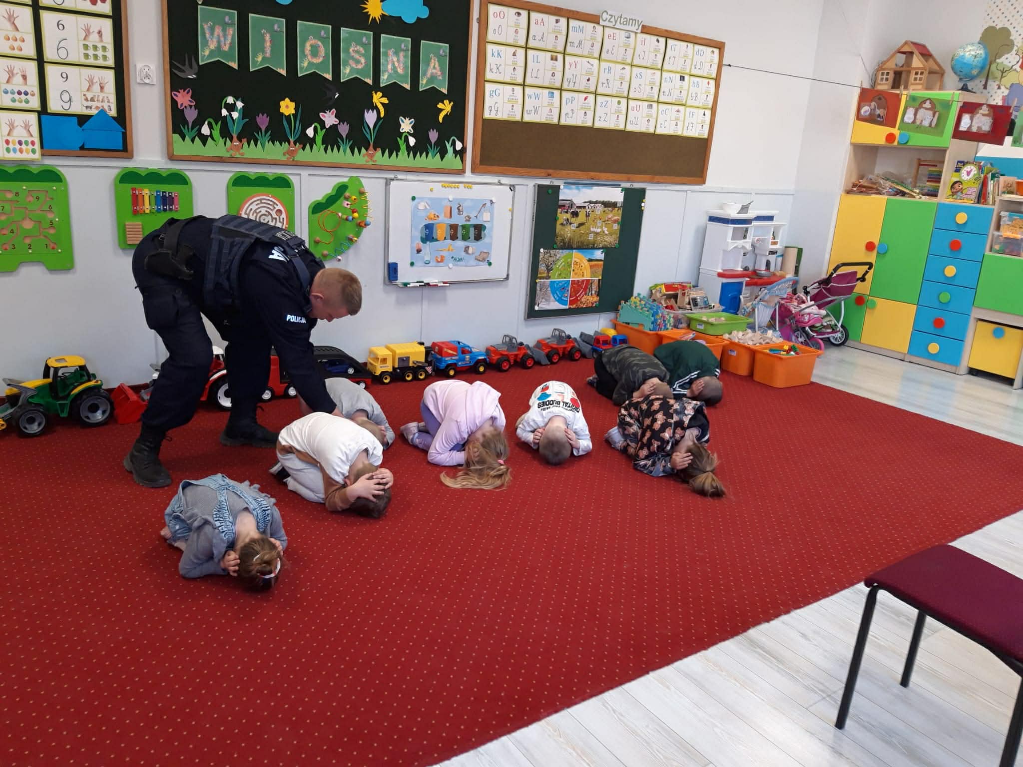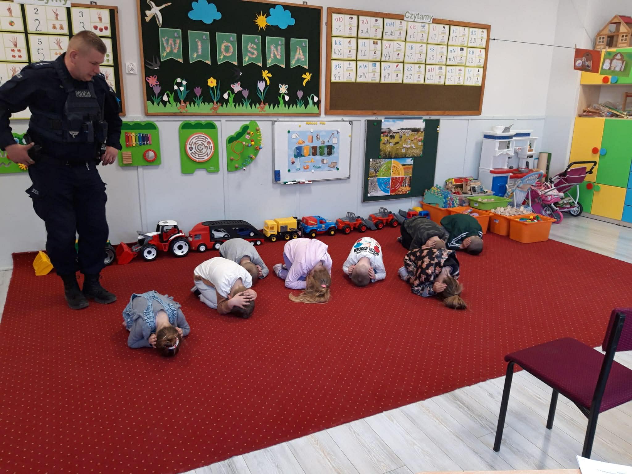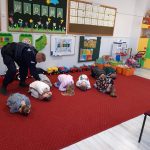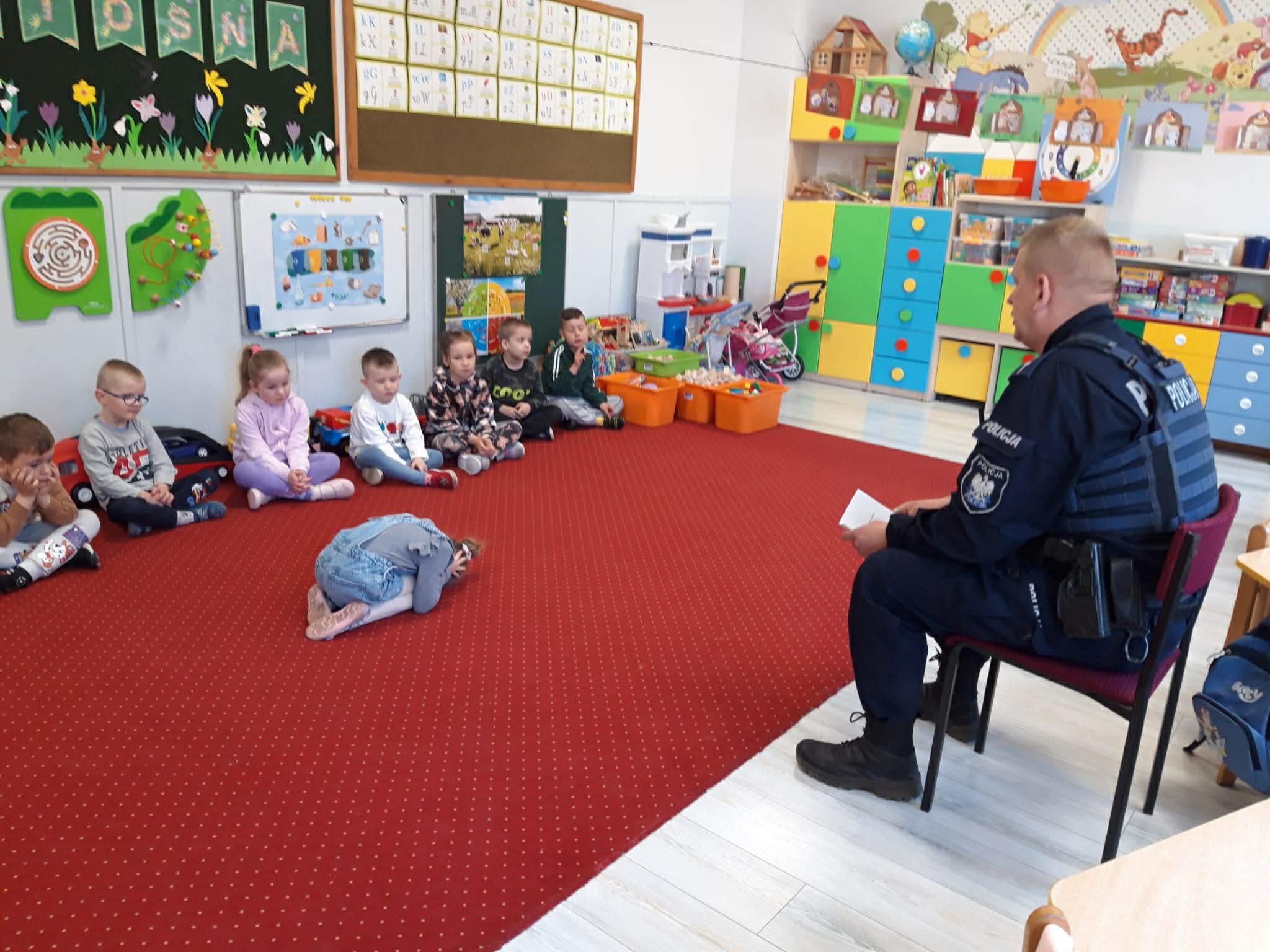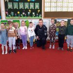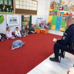 W minioną środę naszych najmłodszych odwiedził pan policjant, dzielnicowy mł. asp. Bartosz Głuch. Rozmawiali o bezpieczeństwie w domu, na placu zabaw oraz o kontaktach z nieznajomymi.