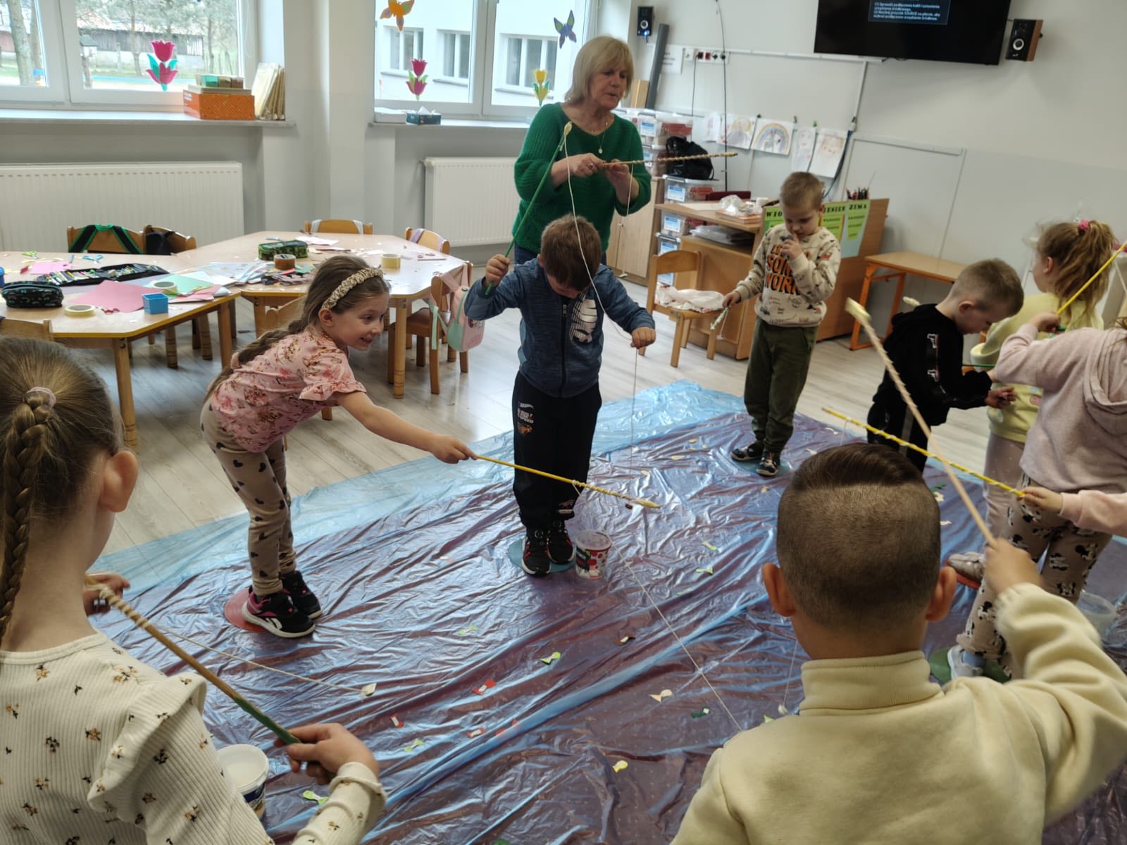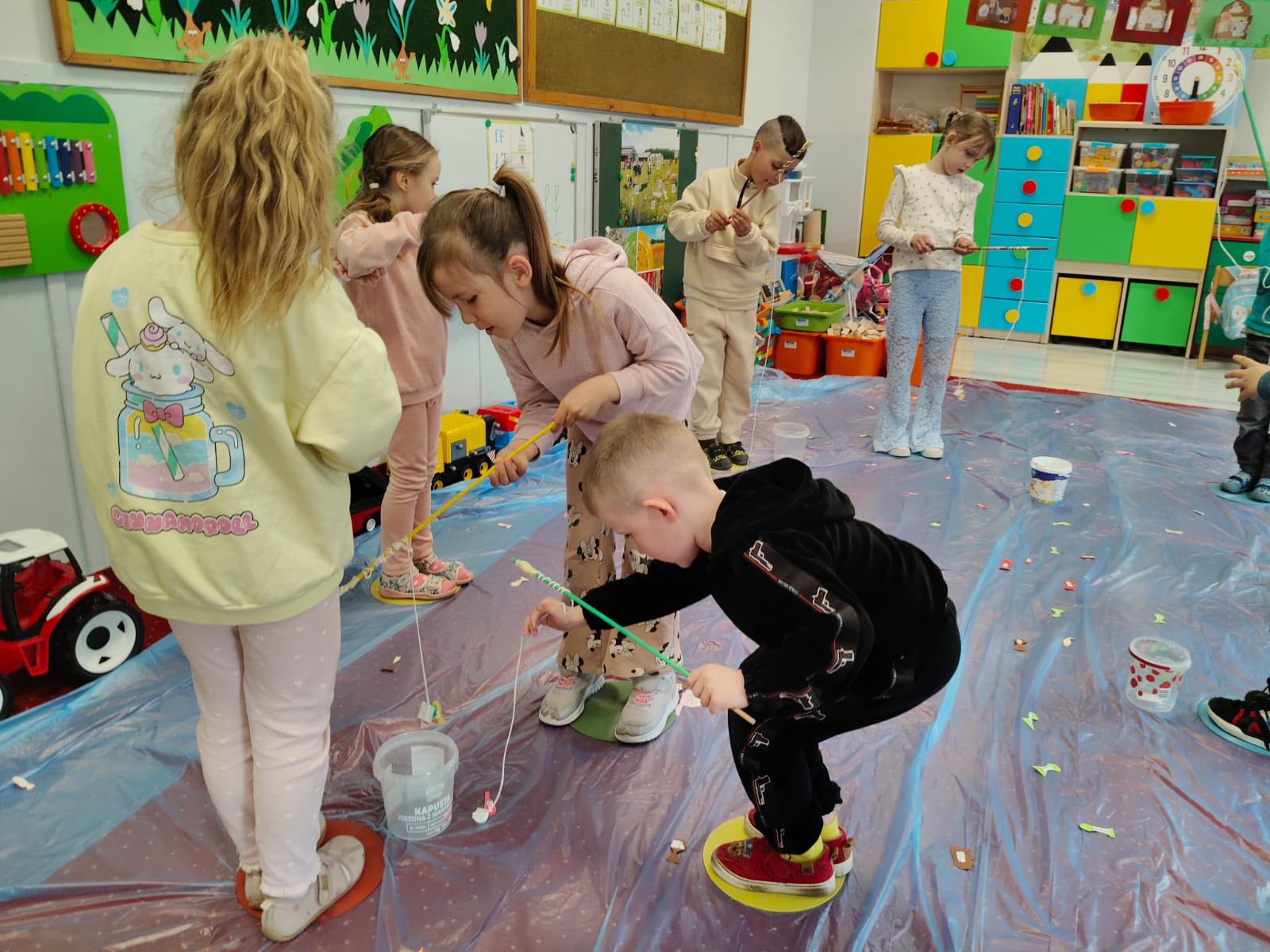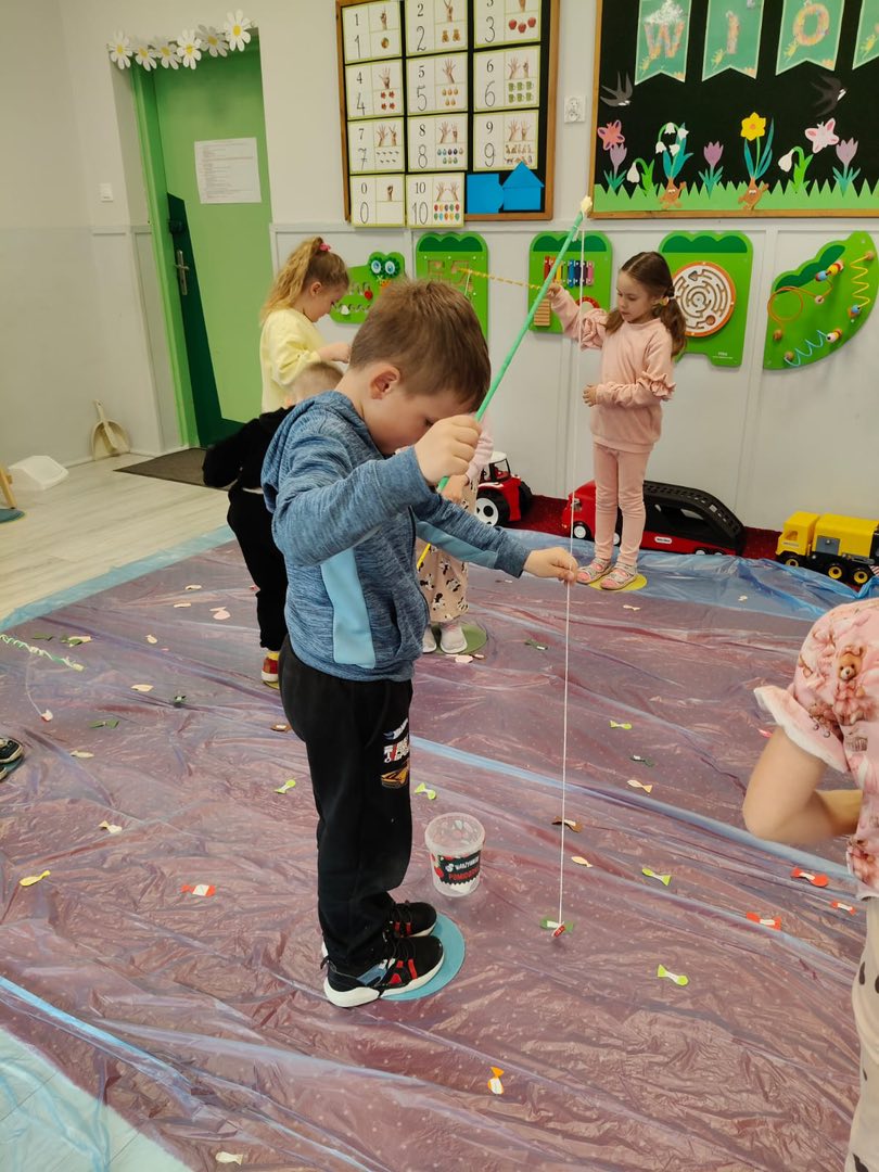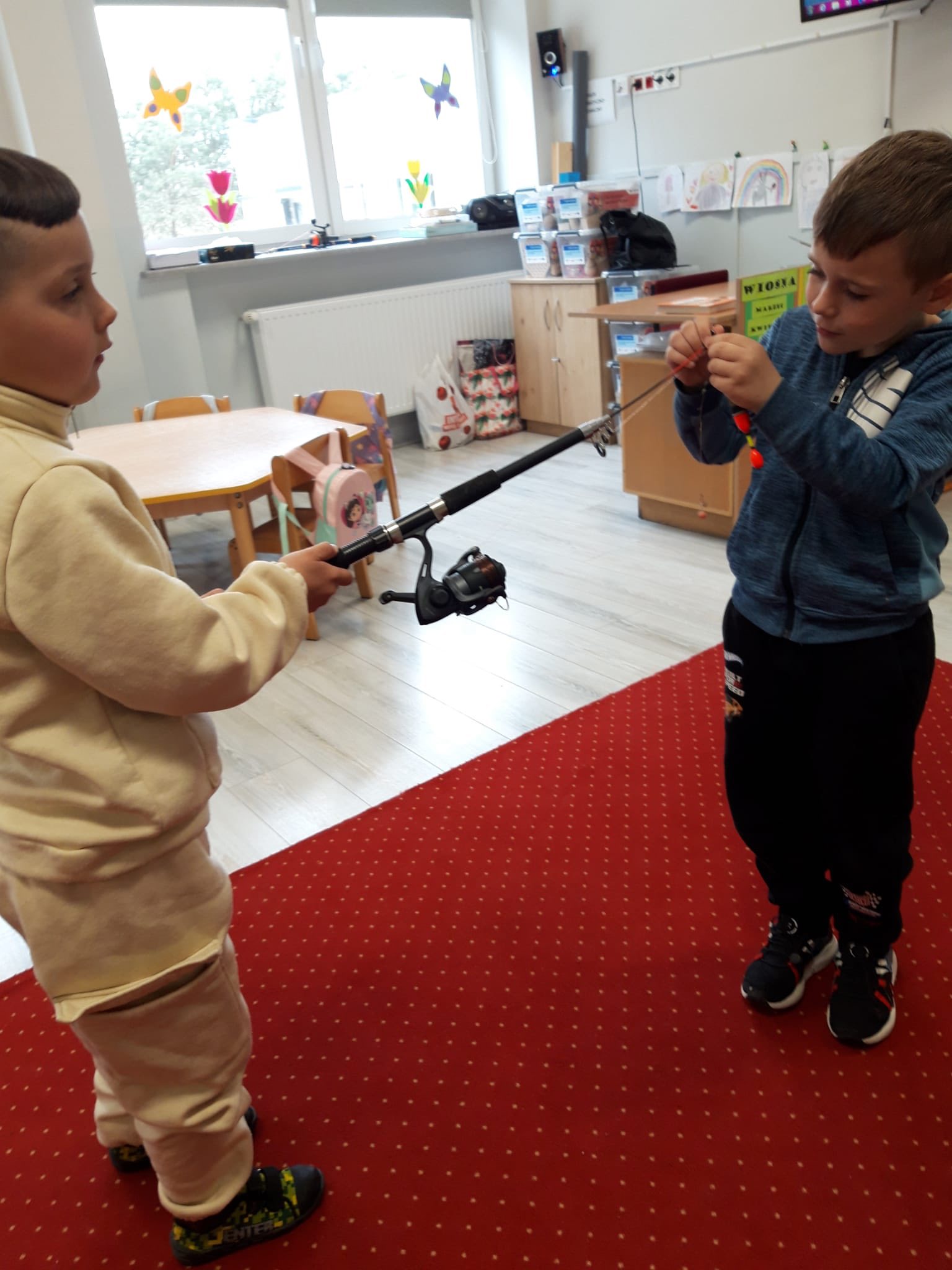 W ramach Projektu Lubuska 9 – Edukacja Techniczna, dzieci z oddziału przedszkolnego samodzielnie zrobiły wędki i bawiły się w łowienie ryb. Rysowały różne gatunki ryb, rozwijając swoją wyobraźnię. Nasz przedszkolak Jakub przyniósł swoją prawdziwą wędkę i z zainteresowaniem opowiadał o wędkarstwie, dzieląc się swoją wiedzą z innymi.