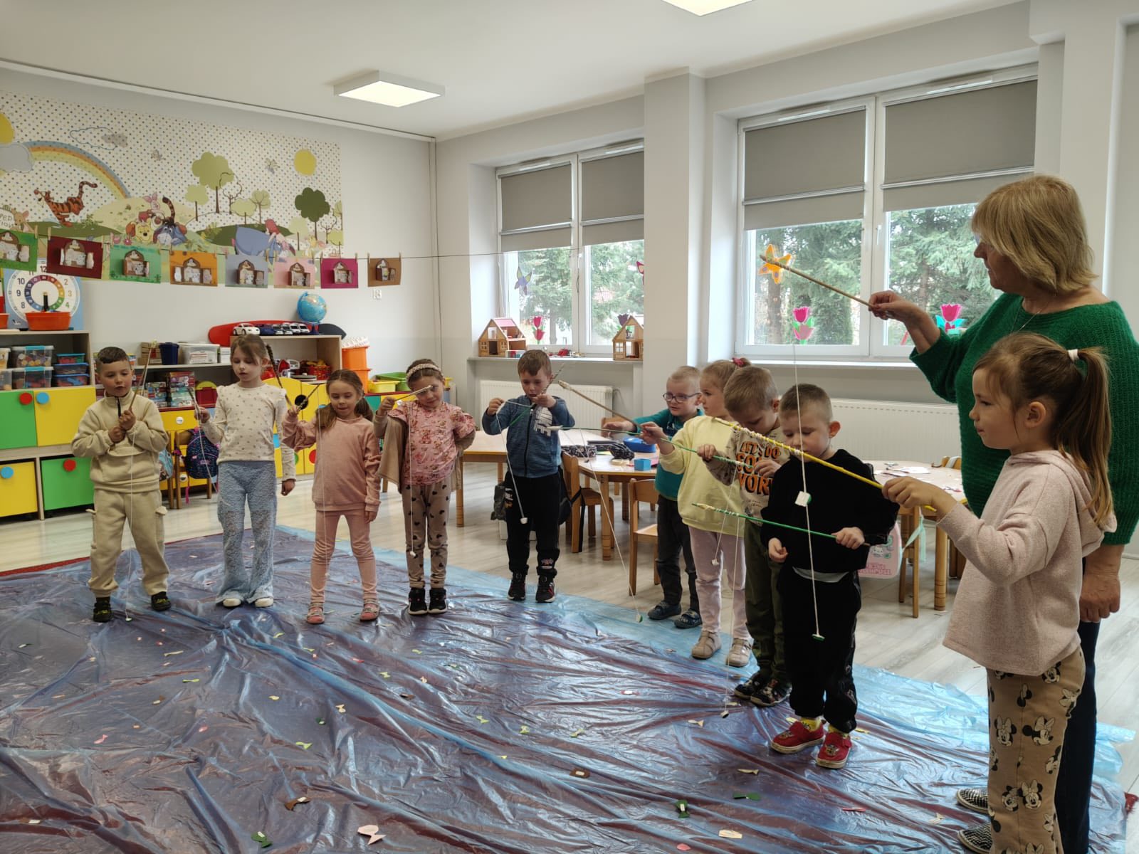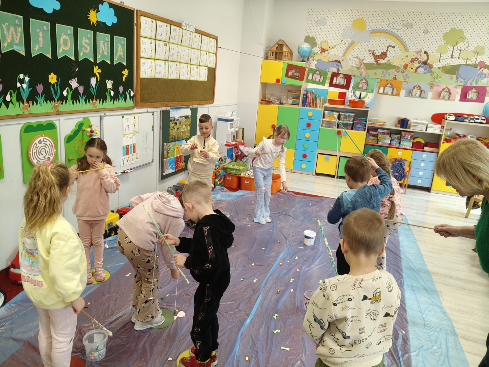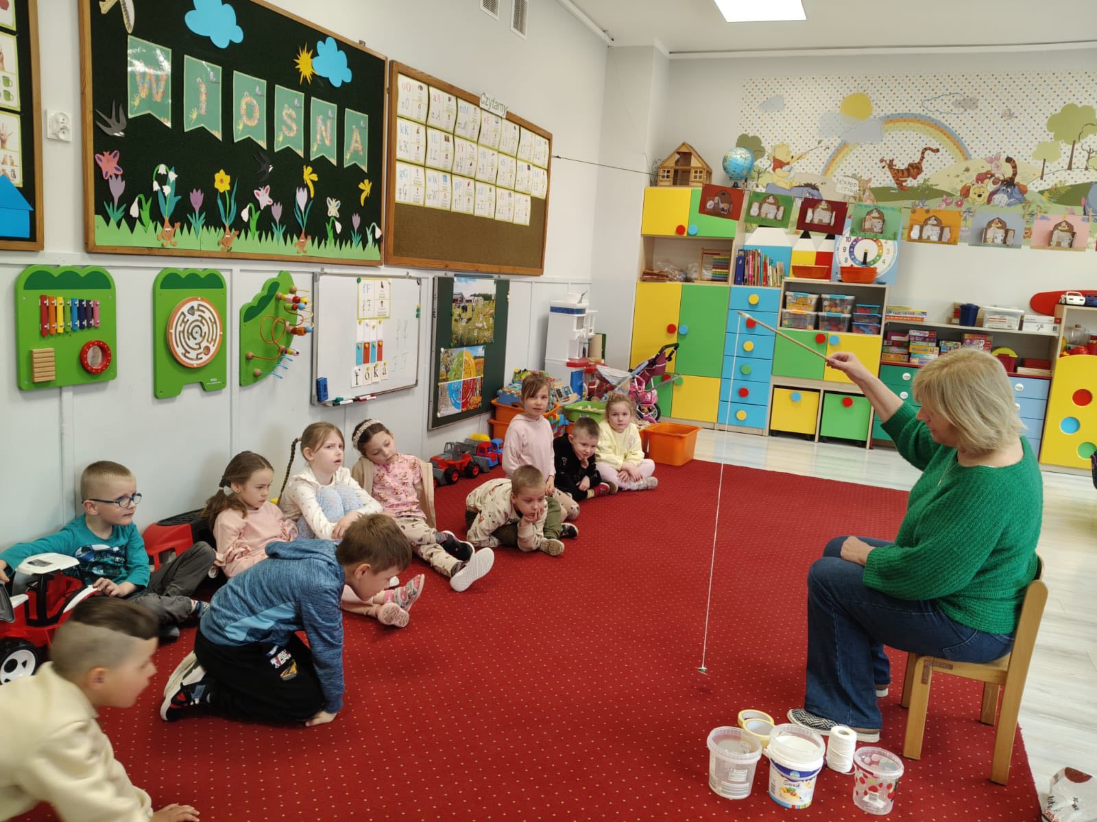 W ramach Projektu Lubuska 9 – Edukacja Techniczna, dzieci z oddziału przedszkolnego samodzielnie zrobiły wędki i bawiły się w łowienie ryb. Rysowały różne gatunki ryb, rozwijając swoją wyobraźnię. Nasz przedszkolak Jakub przyniósł swoją prawdziwą wędkę i z zainteresowaniem opowiadał o wędkarstwie, dzieląc się swoją wiedzą z innymi.